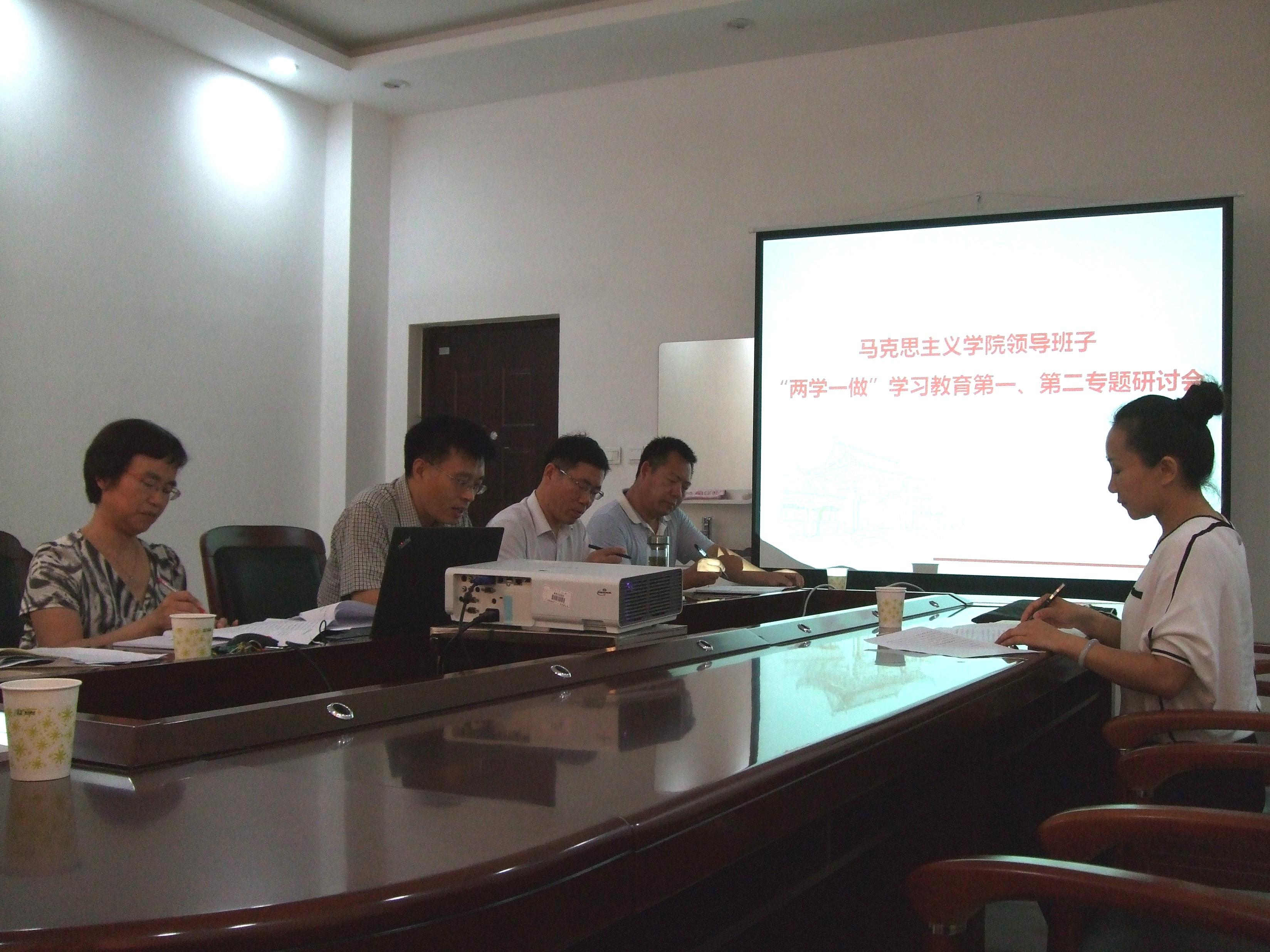 7月7日下午,马克思主义学院领导班子在文综楼223会议室开展了“两学一做”学习教育第二专题研讨,学院处级干部、党委委员和部分机关人员参加了研讨,学校督导组成员、监察处副处长刘小梅莅临指导。