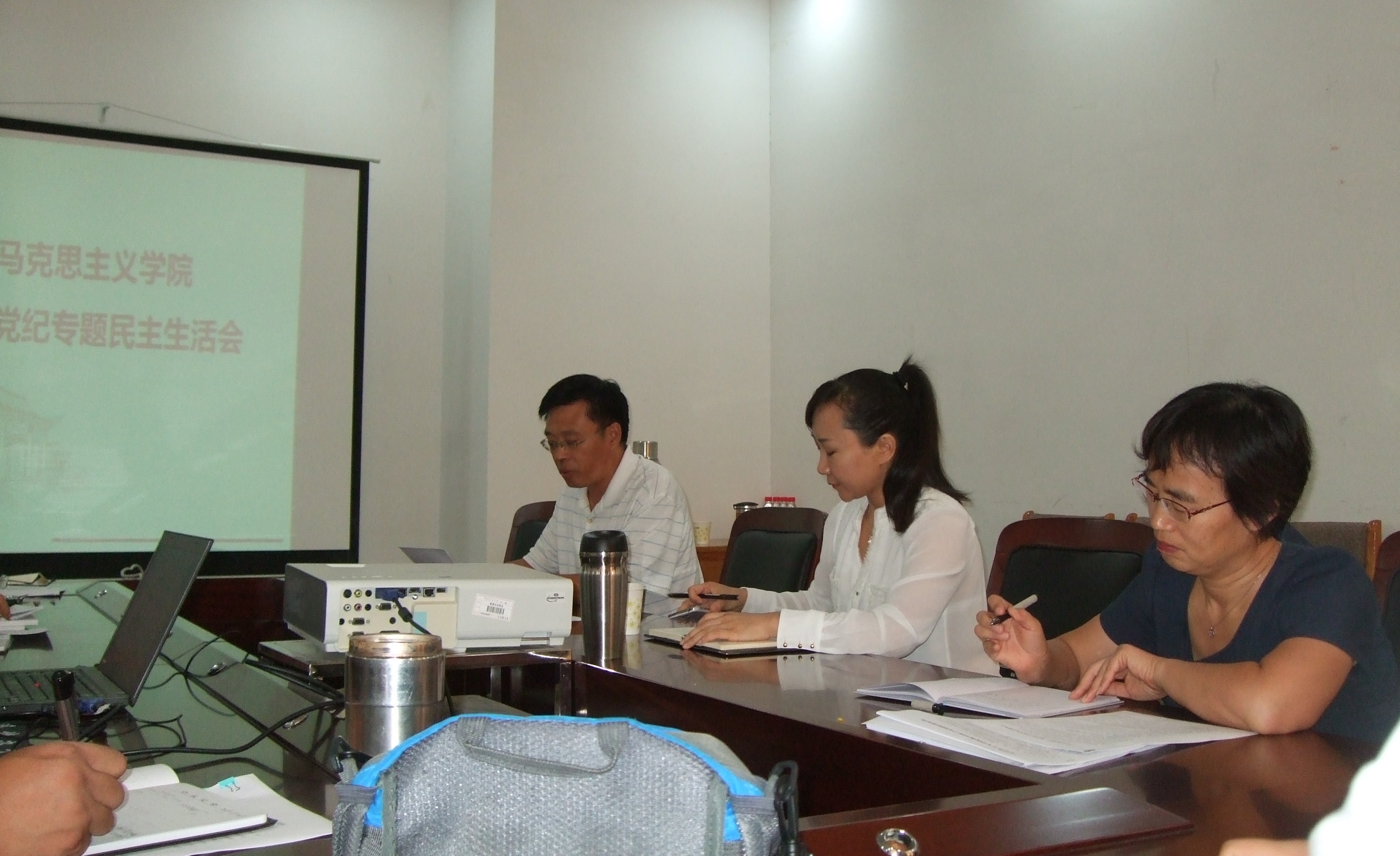 为贯彻落实学校关于开好党风党纪专题民主生活会的要求, 8月26日上午,马克思主义学院党委在文科综合楼223会议室召开了党风党纪专题民主生活会,学院党委中心组全体成员参加了会议,学校督导组成员、监察处副处长刘小梅莅临指导。