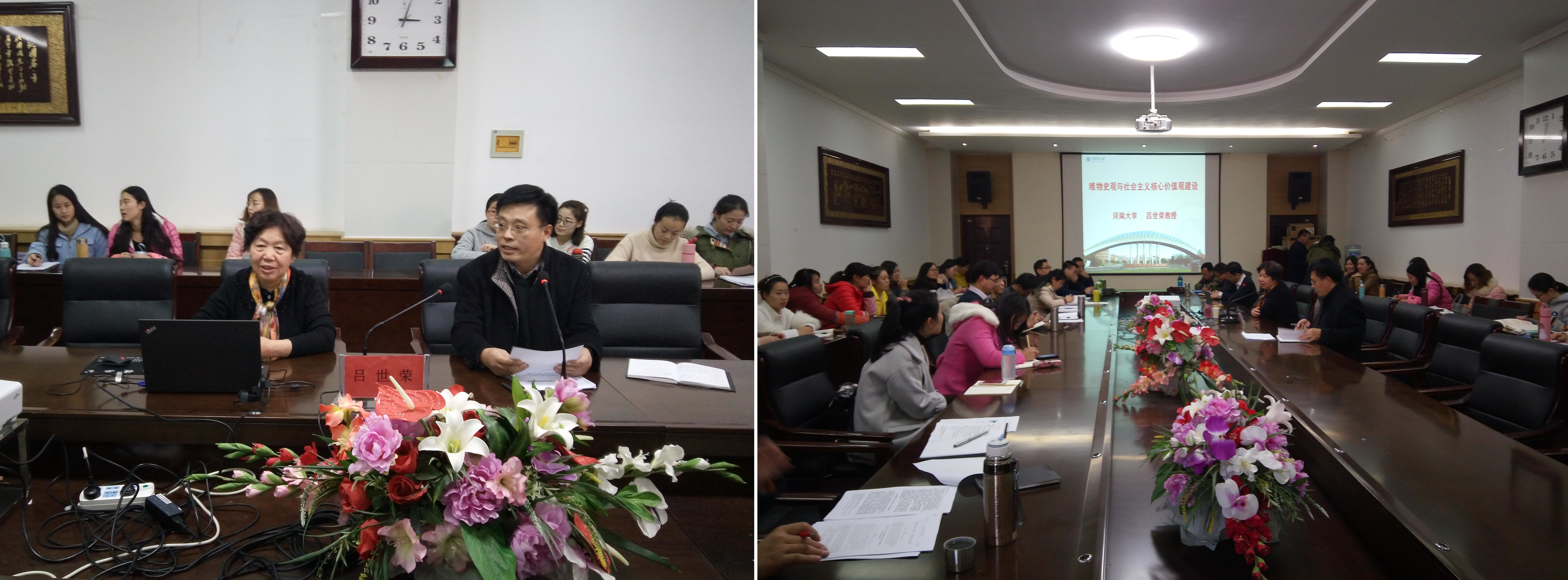 12月6日下午,应我院邀请,河南大学教授、博士生导师吕世荣作了题为《唯物史观与社会主义核心价值观建设》的学术报告,报告在文科综合楼202会议室举行,学院部分教师和研究生参加。讲座由院党委书记李照修主持。