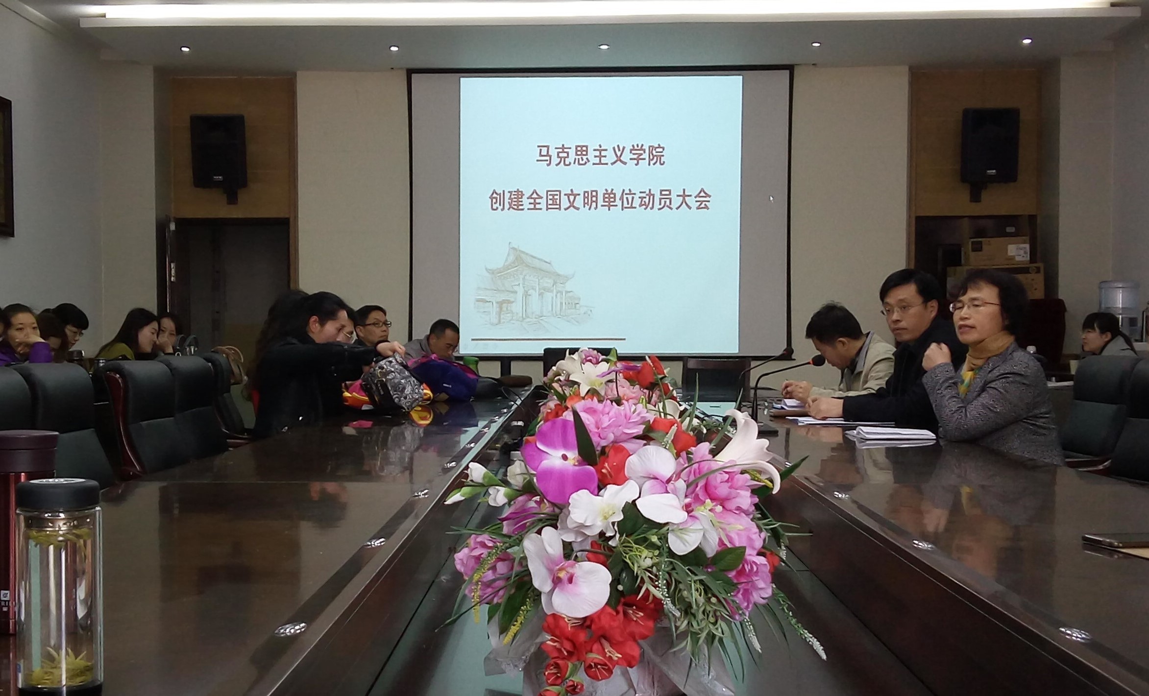 为深入贯彻落实学校关于2017年精神文明建设工作的文件精神,推进我校全国文明单位创建工作,确保争创目标的实现,3月14日下午,马克思主义在202会议室召开精神文明建设工作会议暨创建全国文明单位动员大会,会议由学院党委书记李照修主持,学院全体教职工参加了大会。