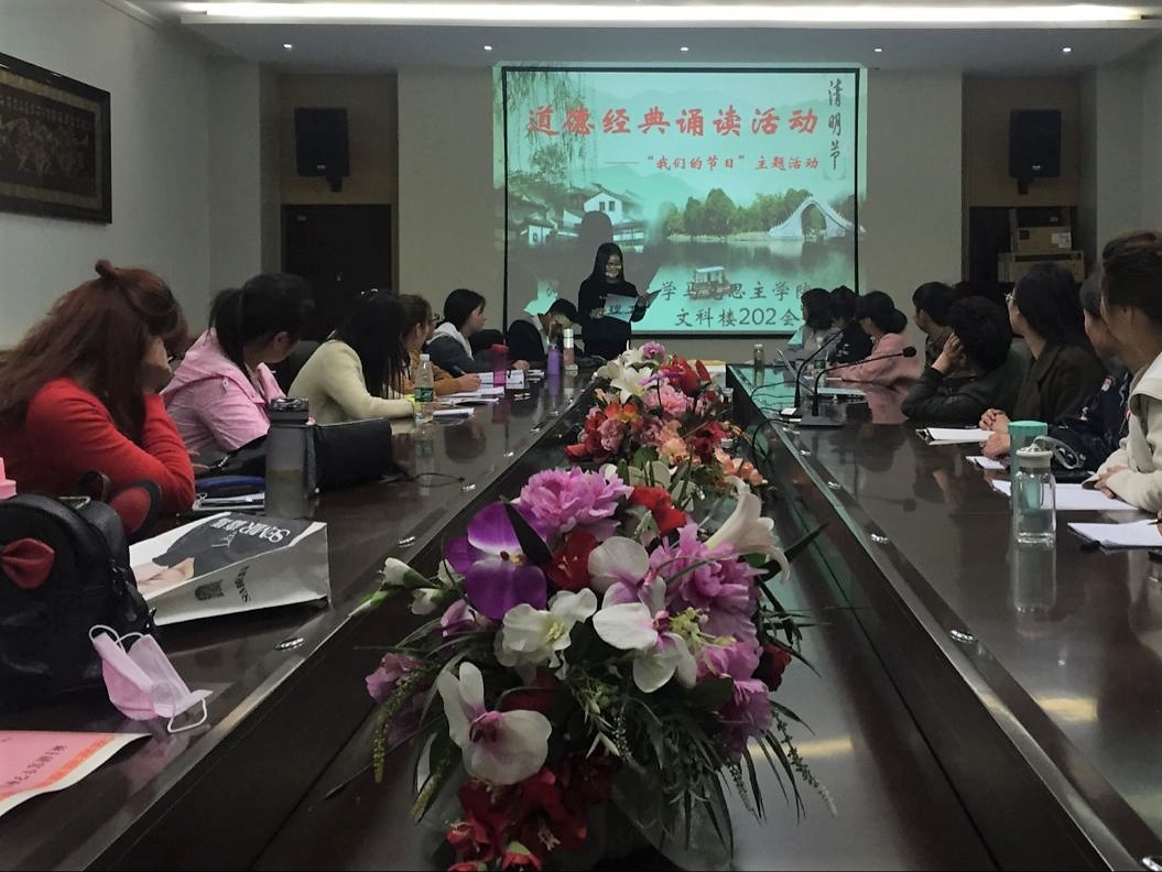 为继承和弘扬中华民族优秀传统文化,提升广大研究生的文化底蕴和道德素养。4月12日上午,学院在文科楼202会议室举办“我们的节日——清明”道德经典诵读活动,我院2016级全体研究生参加了此次活动。 活动以朗诵中华经典诗文的形式,展示了中华传统节日“清明”的文化传承。在活动现场,同学们先后诵读了《清明·怀念友人》、《清明》、《直到又一个清明》等诗词,在跌宕起伏的音律中,他们用富有深情的艺术性语言和得体恰当的肢体语言,表达了自己对中华经典美文的理解,抒发了对先烈先贤的感恩敬仰和对祖国、家乡、人民的深厚情感,弘扬了当代社会主义道德文明风尚和共筑中国梦的豪情壮志。活动现场气氛活跃,掌声不断,取得了良好效果。 |