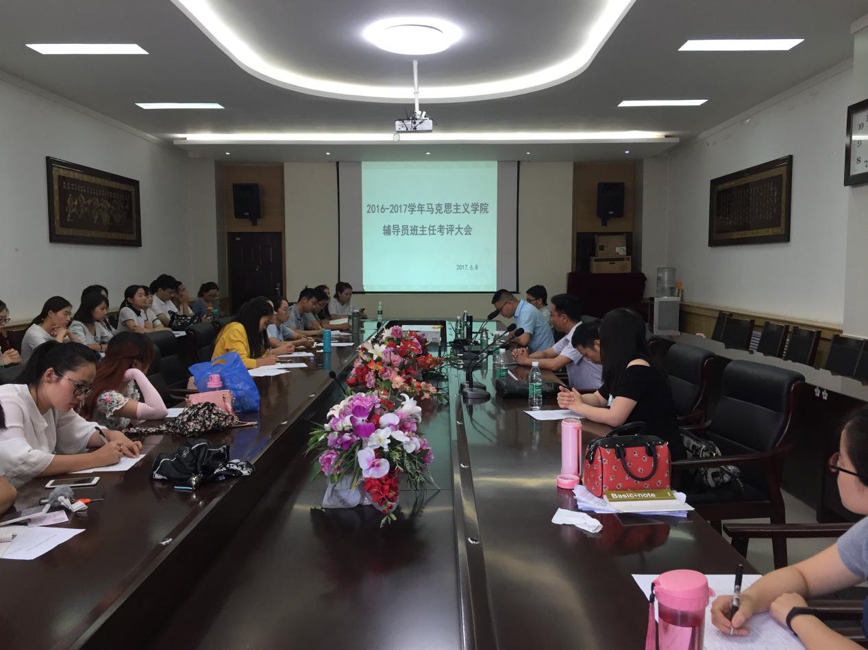 6月8日下午,学院在文科楼202会议室召开2016——2017学年马克思主义学院辅导员班主任考评大会。研究生工作部郭飞鹏老师莅临指导,2014级班主任张文嘉、2015级班主任李伟、2016级班主任米卫娜以及2014级、2015级和2016级研究生参加,会议由学院团委书记、辅导员胡志明主持。