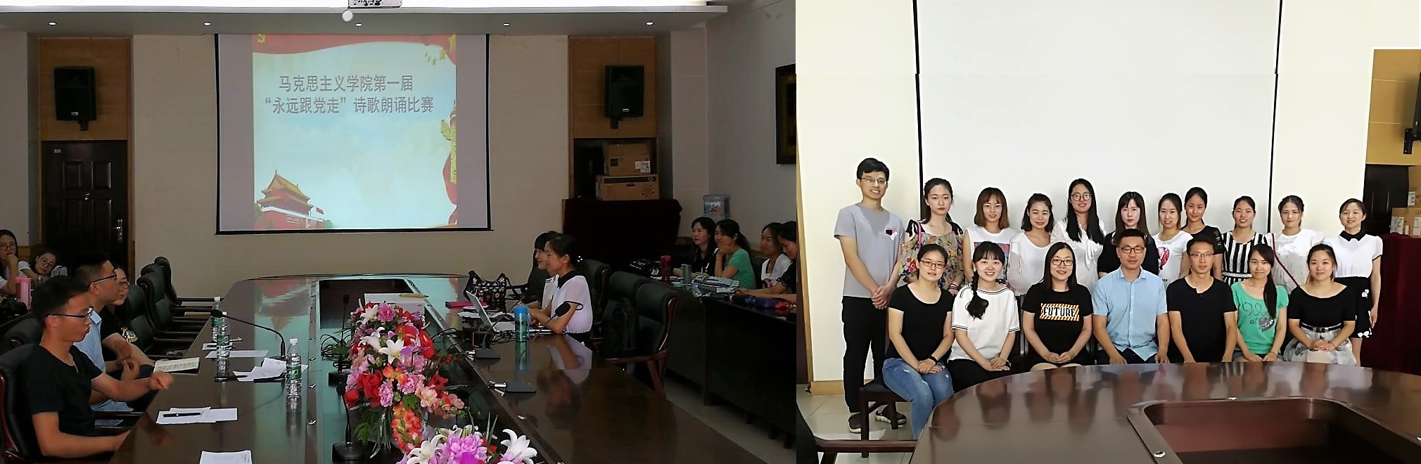 为庆祝建党96周年,弘扬党的优良传统,讴歌党的丰功伟绩,坚定全体研究生永远跟党走的信心与决心。6月15日上午,马克思主义学院在文科楼202室举办第一届“永远跟党走”诗歌朗诵比赛,院团委书记胡志明、2016级班主任米卫娜、院研会主席李云峰等出席此次活动,并担任评委。