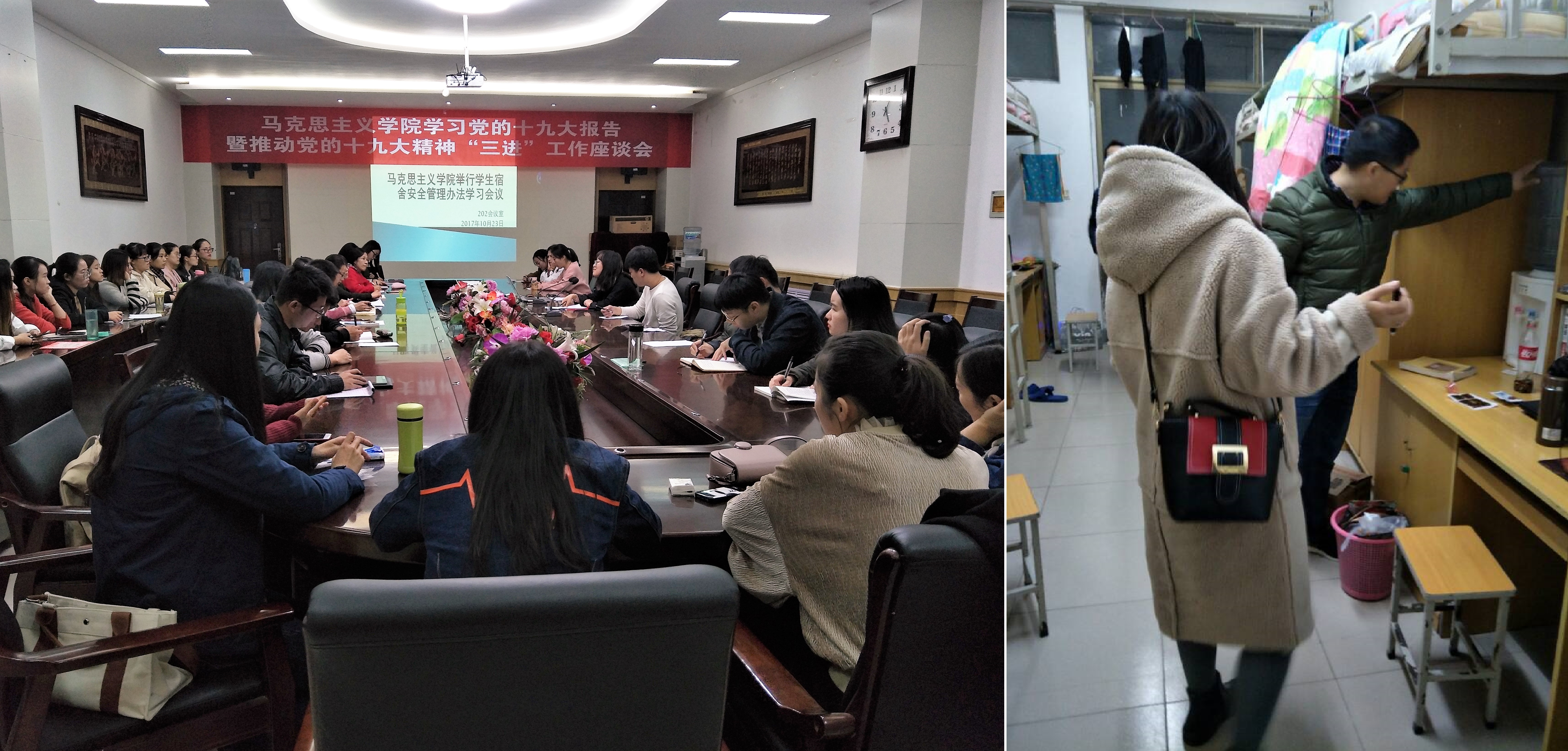 为严格执行学校宿舍管理规章制度,落实学校研究生宿舍安全管理办法工作会议精神,学院分别于10月23日下午和11月20日晚上,认真组织了研究生宿舍安全管理办法学习和宿舍安全排查工作。