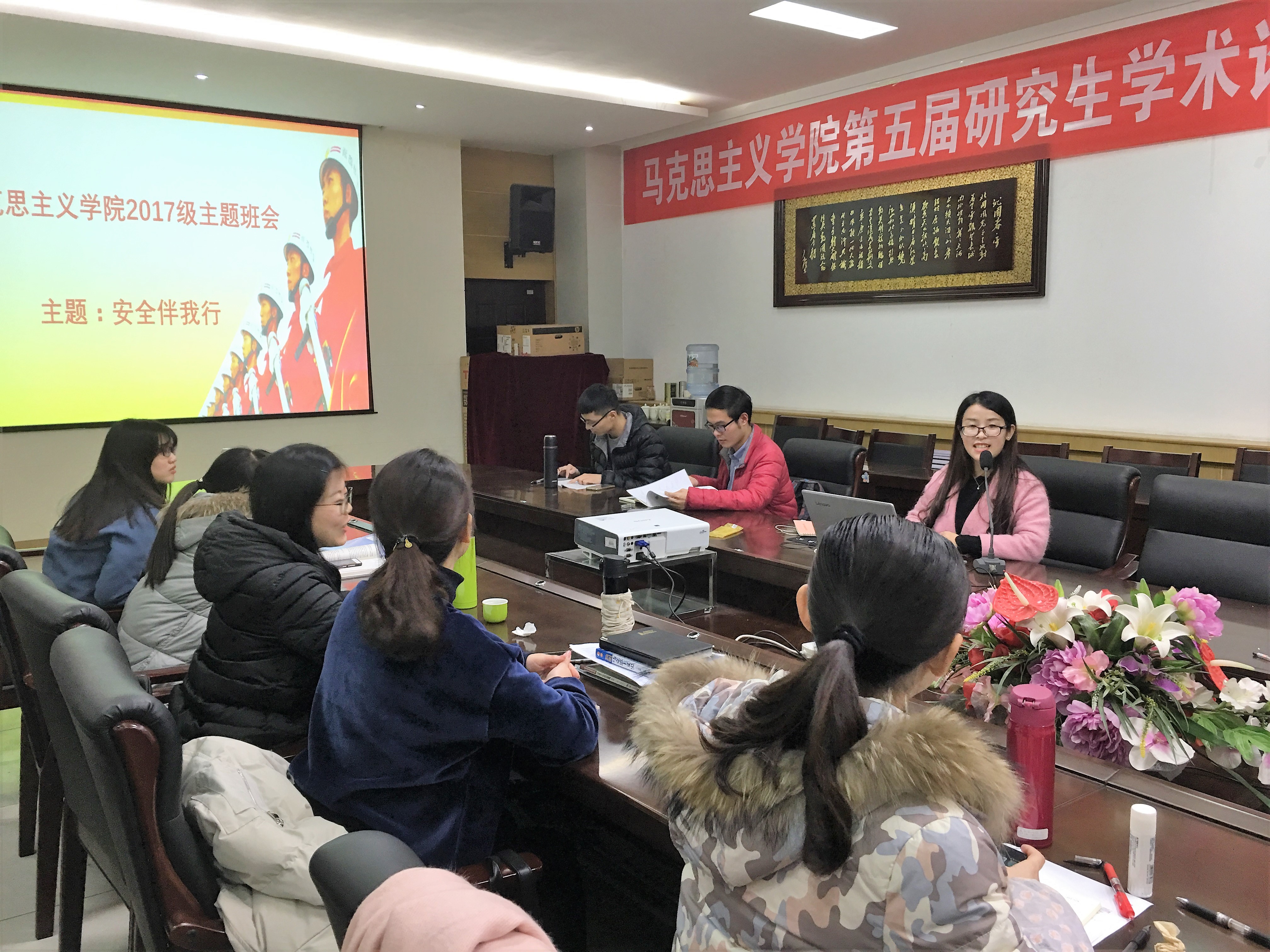 11月30日,学院2017级研究生利用班会课时间在文科楼202室开展了一场主题为“安全伴我行”的主题班会。本次主题班会的目的是让学生们树立消防安全意识,了解如何预防火灾的发生,如何报警,以及在火灾中如何自救、互救等消防知识,提高学生的自护、自救能力。同学们通过多媒体展示收集到的有关火灾事故的新闻、图片,并观看消防演习了解自救的基本要领。大家深刻意识到应当牢记火警电话,遇到事故时及时拨打求救,但不能随意乱打火警电话,假报火警是扰乱公共秩序、妨碍公共安全的违法行为。
