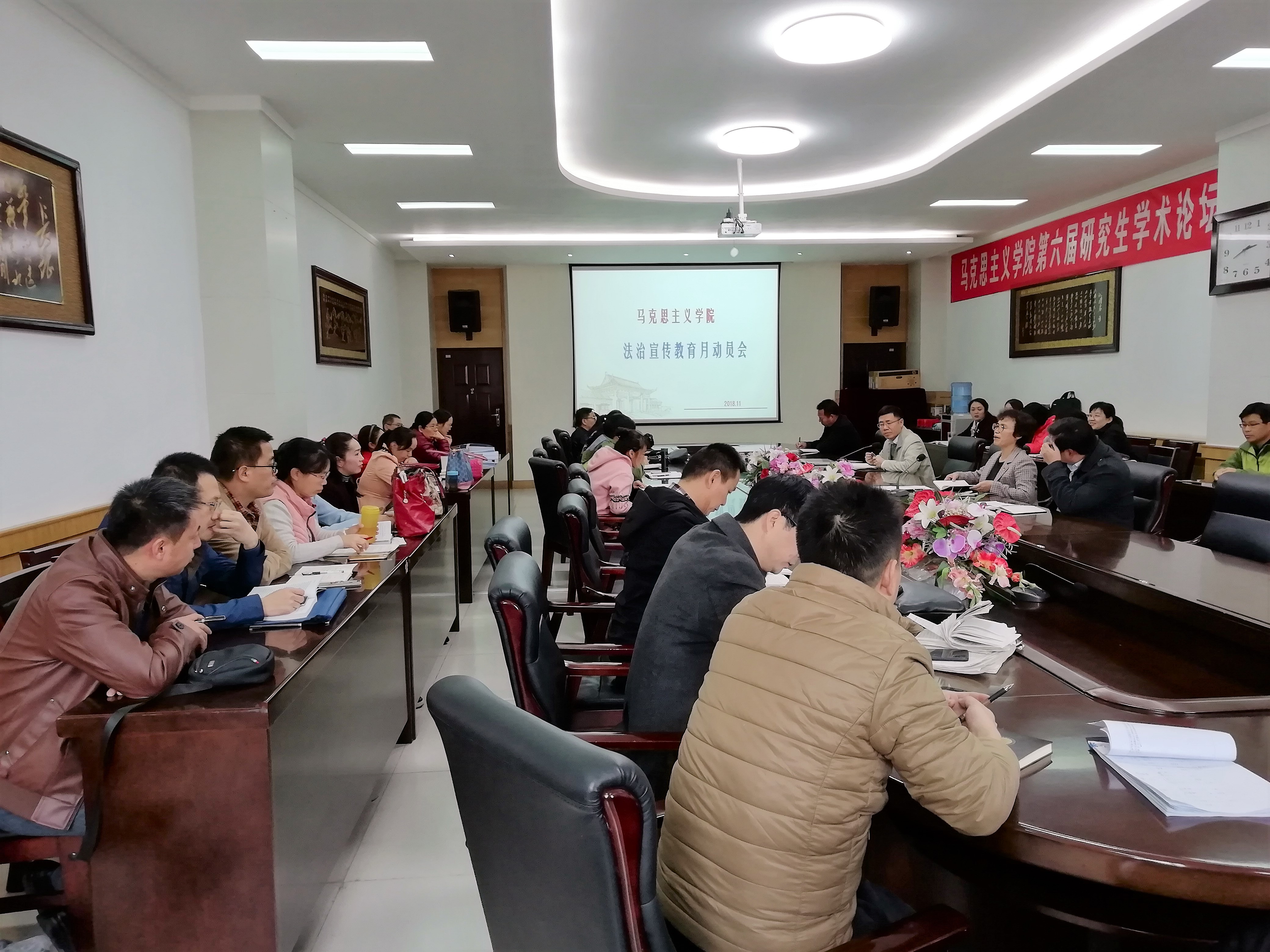 会上,侯菊英首先向大家传达了学校《关于开展法治宣传教育月活动的通知》等文件精神,并就学院开展法治宣传教育活动进行动员;随后,她就开展法治宣传教育月活动的时间、主题、内容、要求等几个方面进行了明确的部署和安排。会议决定由学院党政领导和各科室负责人组成法治宣传教育月活动领导小组,制定详细的活动方案,全面负责法治宣传教育活动的工作。