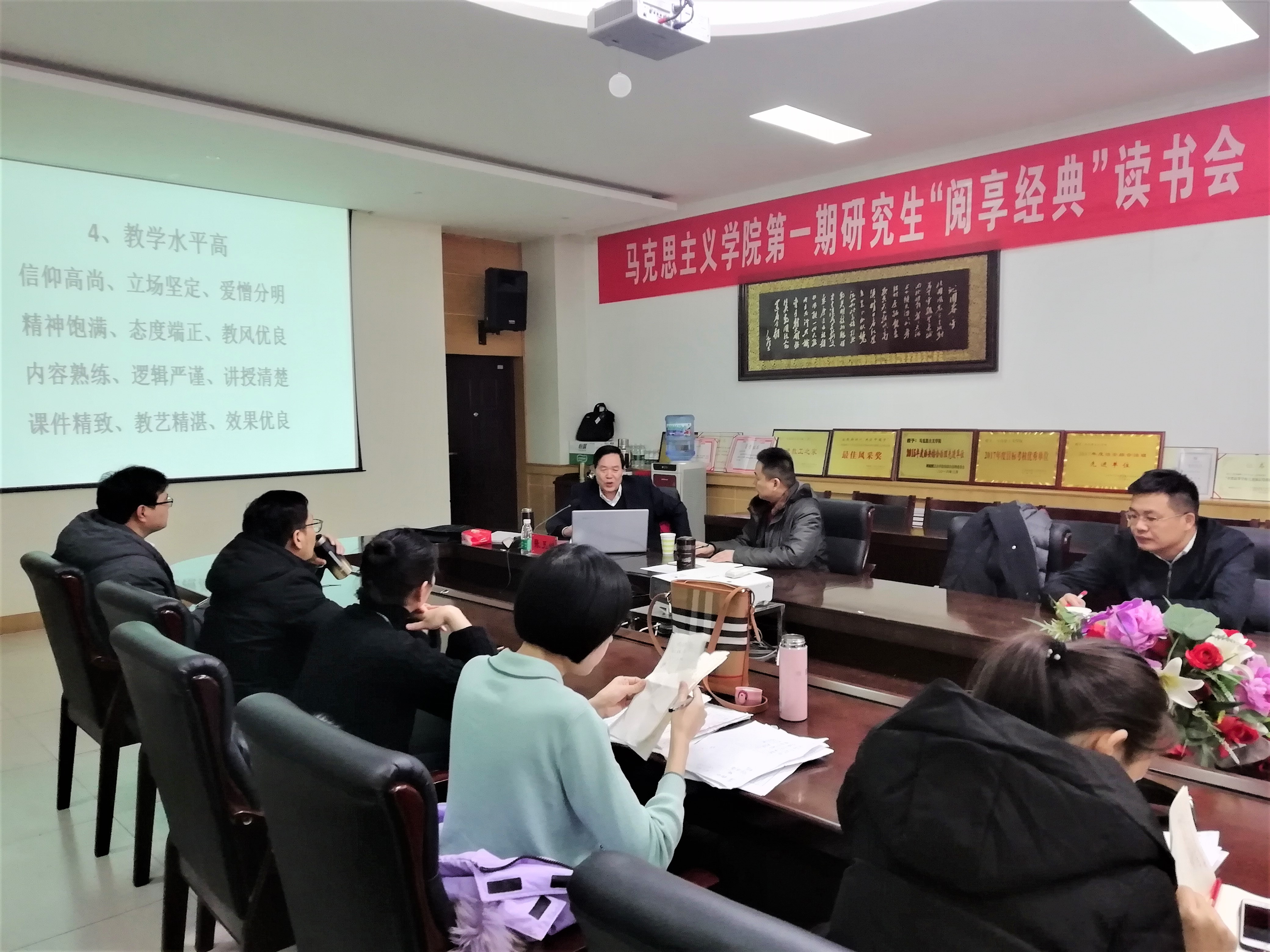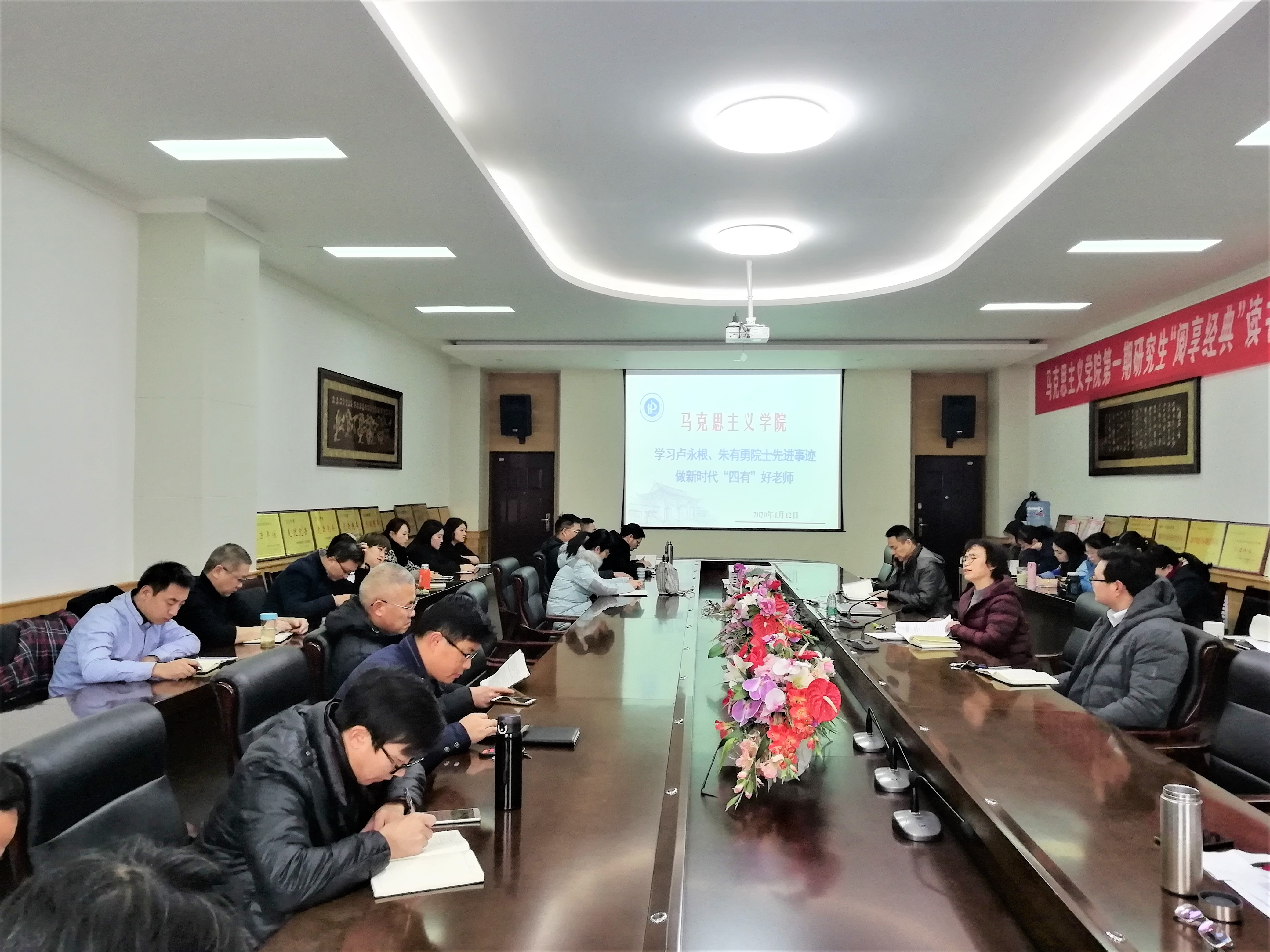 在为期两天的培训中,校社科处处长牛海鹏作了题为“社科类科研项目申报及其相关文件解读”的专题讲座;校本科教学督导组专家张玉培作了题为“担当?信仰?本领”的专题讲座;校党委宣传部徐春浩作了题为“如何寻找新闻点”的专题讲座。院党委书记侯菊英以“学习卢永根、朱有勇院士先进事迹,做‘四有’好老师”为题,带领大家共同学习研讨卢永根、朱有勇院士的先进事迹;院党委副书记、副院长张富文就新媒体、新闻热点在思政课教学中的运用和大家交流了看法;副院长邵发军与各教研室主任围绕现代教育技术与混合式(线上线下)教学、思政课教学科研面临的形势与任务等作了交流发言。最后,郑小九院长作培训总结,并对2020年工作进行了安排与部署。