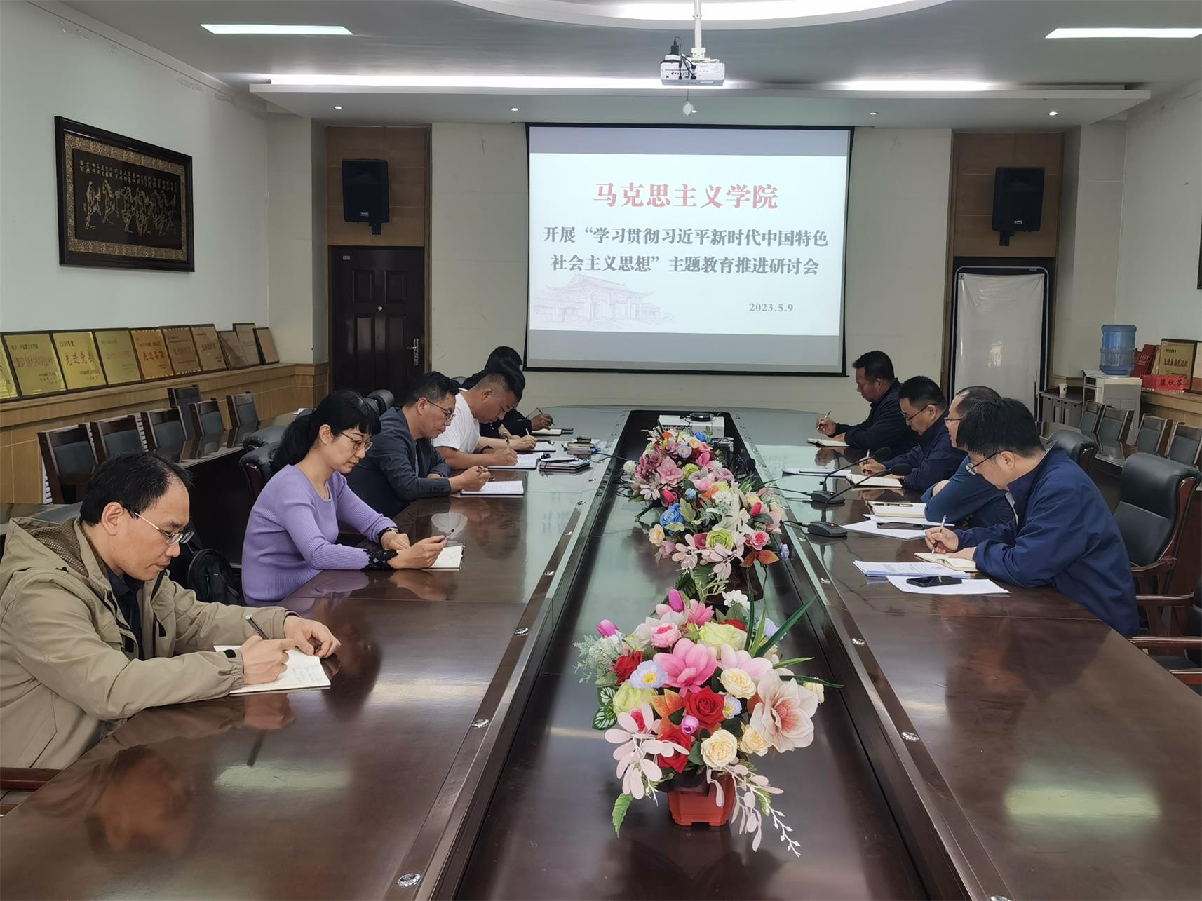 为推动学习贯彻习近平新时代中国特色社会主义思想主题教育走深走实,5月9日下午,马克思主义学院党委围绕“把‘六个坚持’贯穿于马克思主义学院办学育人全过程”这一主题,举办了主题教育专题研讨会。院党委书记洪振涛主持研讨会并作辅导报告,院领导陈留根、邵发军和各党支部书记、支委代表参加研讨,联系工作实践分享了学习心得体会。