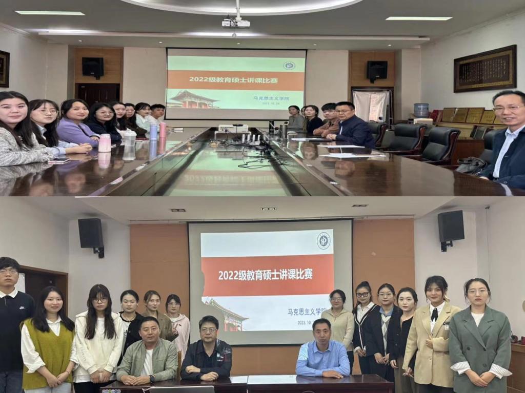 三尺讲台育桃李,冰心一片化师魂。为全面推进马克思主义学院教育硕士专业的培养水平,培养具有较强的教育教学实践和研究能力的思想政治课程专任教师,更好地提升学生的教学设计、教学组织、课堂语言、运用现代教育技术等基本能力与素养,10月24日下午,我院举行第四届“崇德杯”教育硕士讲课比赛。本次大赛邀请了院领导陈留根、邵发军、王新刚以及教师代表张永远、魏新强、杨晓军担任评委,参赛对象为马克思主义学院的2022级教育硕士。