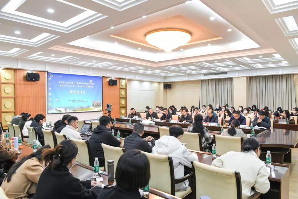 2023年12月9日,河南理工大学马克思主义学院、河南省中国特色社会主义理论体系研究中心(河南理工大学基地)在力行楼一楼会议室成功举办第十一届崇德杯研究生学生论坛暨习近平总书记关于“两个结合”重要论述理论研讨会。校纪委书记赵晓军出席研讨会并致辞。延安大学崔海良教授、华中农业大学胡丰顺教授、新乡医学院三全学院王炜烨教授,马克思主义学院党政领导洪振涛、陈留根、邵发军以及学院教师代表、论坛获奖学生代表参加会议。马克思主义学院2022级、2023级全体研究生参与交流学习。研讨会由洪振涛主持。