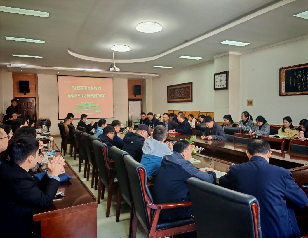 10月21日,焦作西大井1919文旅景区管理局局长王保才应邀来校,以“西大井的前世今生”为题作报告。学院党委书记洪振涛为王保才颁发特聘教授聘书,院长郑小九主持报告会,学院全体教师参会。