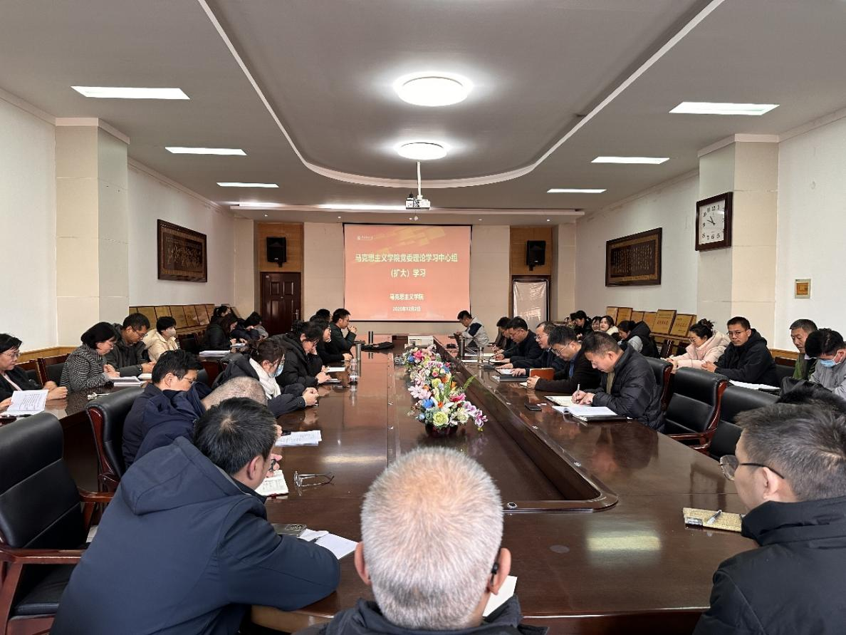 12月2日下午,马克思主义学院在文科楼202会议室召开党委理论学习中心组(扩大)学习会,专题集中学习党的二十届四中全会精神。学院党委书记洪振涛主持学习会,院党委理论学习中心组成员和全体教职工参加学习。