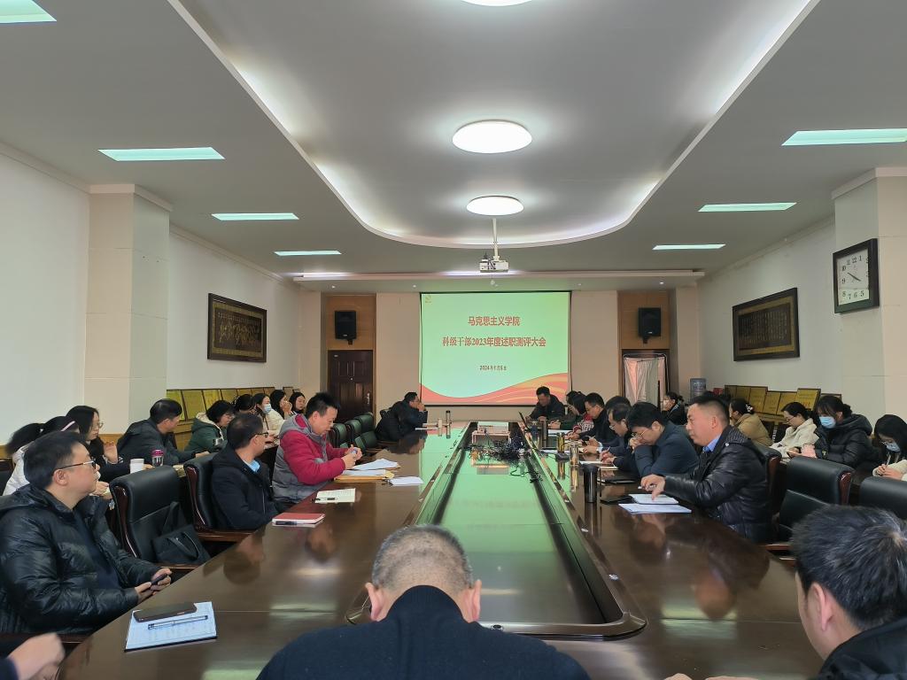 为全面准确、客观公正地考核科级干部德才表现和履行职责情况,进一步加强科级干部队伍建设,根据学校科级干部考核工作安排,2024年1月5日下午,马克思主义学院党委在文综楼202召开科级干部述职测评会议,学院全体教职工参加会议。会议由学院党委书记洪振涛主持。
