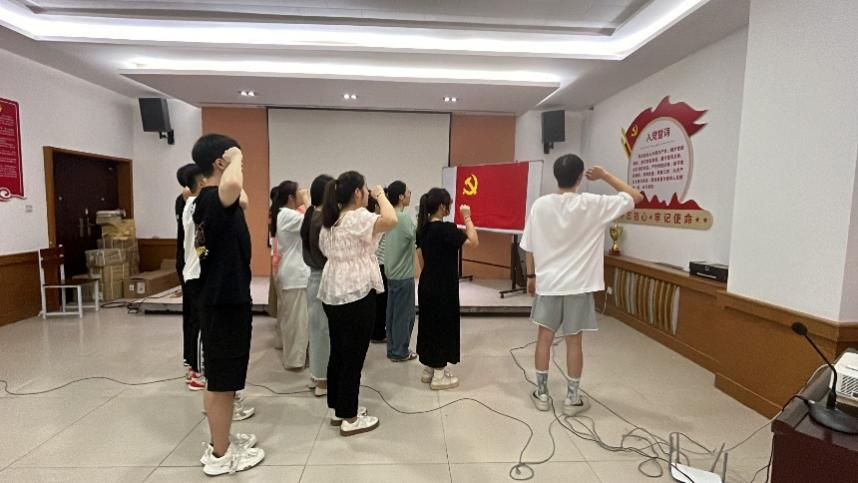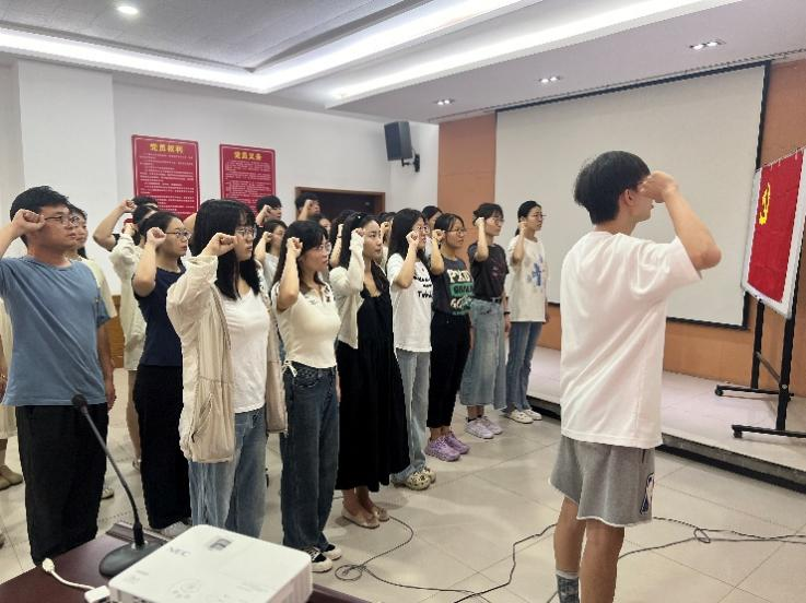 “我志愿加入中国共产党,拥护党的纲领,遵守党的章程……”,面对鲜红的党旗,新老党员高举右拳庄严宣誓,铿锵的声音、坚定的誓言,表达了青年学子对党绝对忠诚、永远跟党走的坚定决心,彰显了牢记初心使命、永远不懈奋斗的蓬勃朝气。