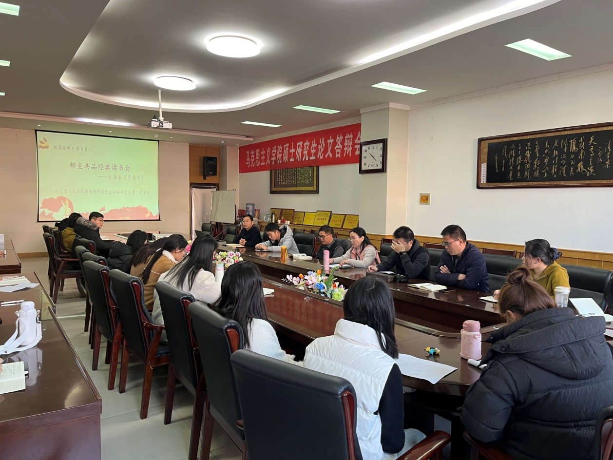 习近平总书记指出:“学习理论最有效的办法是读原著、学原文、悟原理。”为更好地帮助师生增强马克思主义理论修养,提升师生的思辨能力,原理教研室党支部与研究生第二党支部于11月29日在202会议室联合开展了“师生共品经典读书会”主题党日活动,共读毛泽东经典哲学著作《矛盾论》。