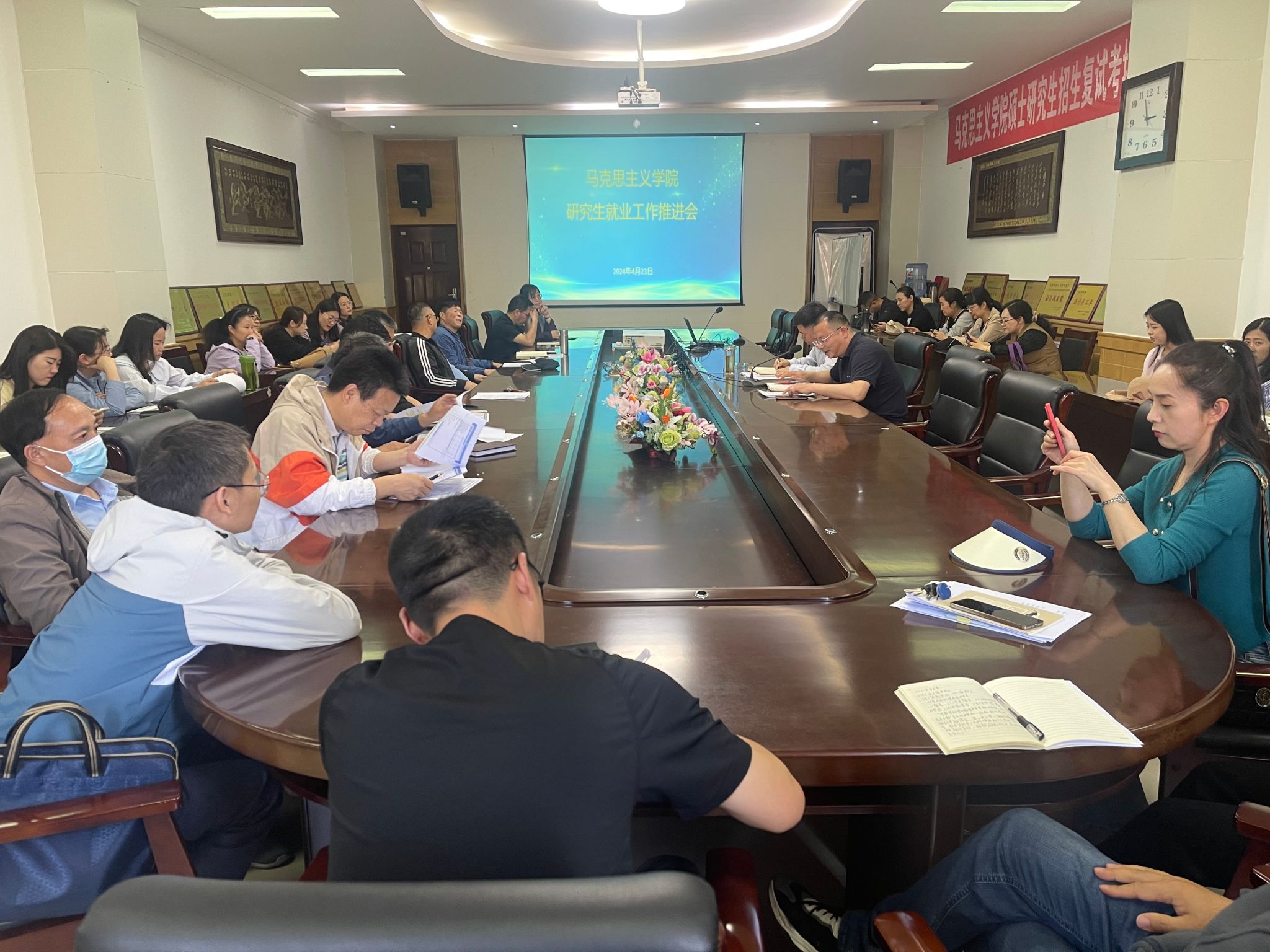 为进一步做好学院2024届研究生就业工作,汇聚就业工作合力,共同促进毕业生更充分和更高质量就业,4月23日,马克思主义学院在文科楼202会议室召开研究生就业工作推进会。学院党委书记洪振涛、院长郑小九出席会议,学院全体教师参加会议。