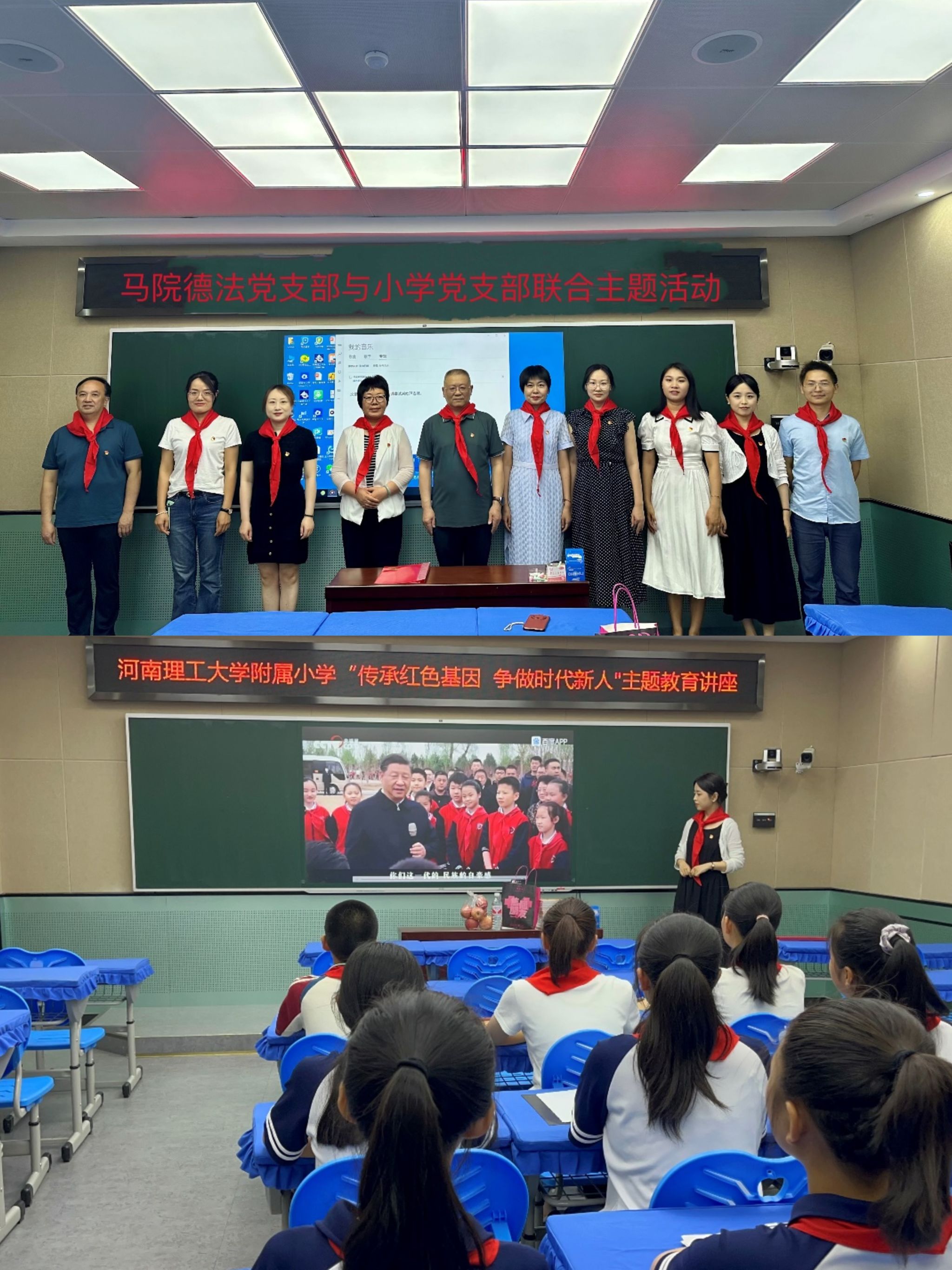 为贯彻落实习近平总书记关于学校思政课建设的重要指示精神,推进大中小学思政课一体化建设,深化青少年爱国主义教育,培养少先队员听党话、跟党走的政治觉悟,6月7日下午,马克思主义学院道德与法治教研室党支部与附属小学党支部联合开展“大手拉小手,听党话跟党走”主题活动。
