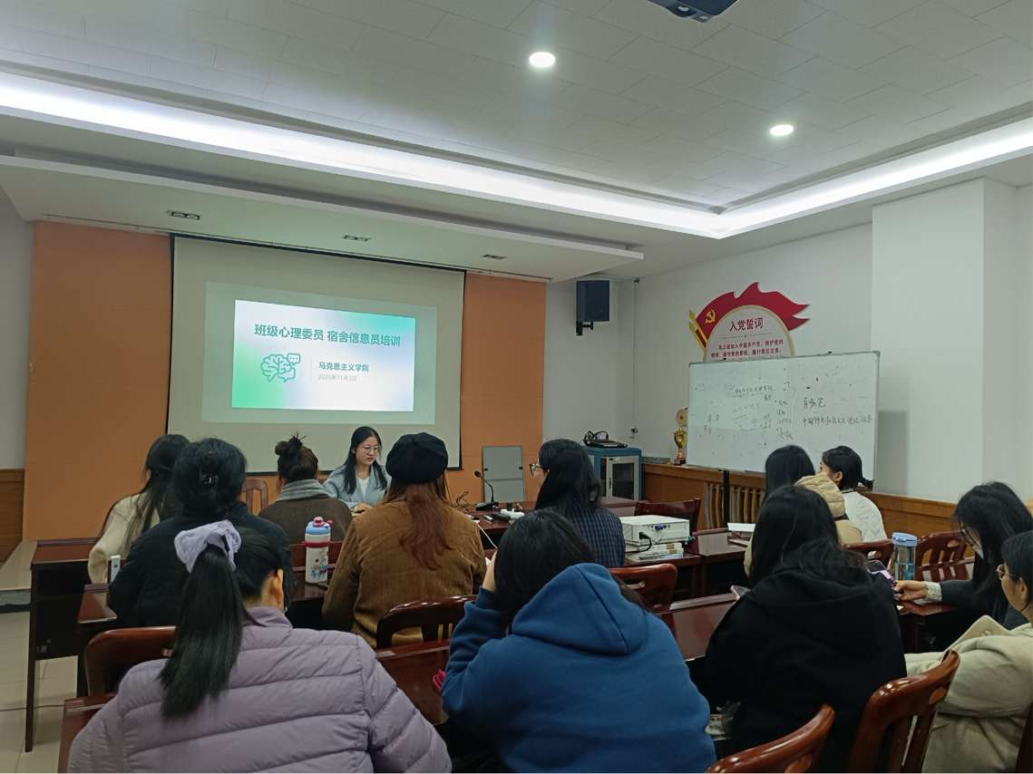 为进一步加强学院心理健康教育工作,提升班级心理委员和宿舍信息员的心理服务能力,近日,马克思主义学院成功举办了2024级班级心理委员、宿舍信息员培训活动。本次培训由2024级班级心理委员李苑和王珊主持,2024级全体宿舍信息员参加。