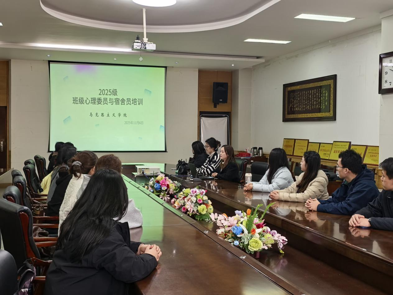 为充分发挥班级心理委员和宿舍信息员的积极作用,打造一支服务班级学生的基层工作队伍,更好地满足学生的心理健康教育的需要,近日,马克思主义学院成功举办了2025级班级心理委员、宿舍信息员培训活动。本次培训由2025级班级心理委员刘攀和侯振安主持,2025级全体宿舍信息员参加。