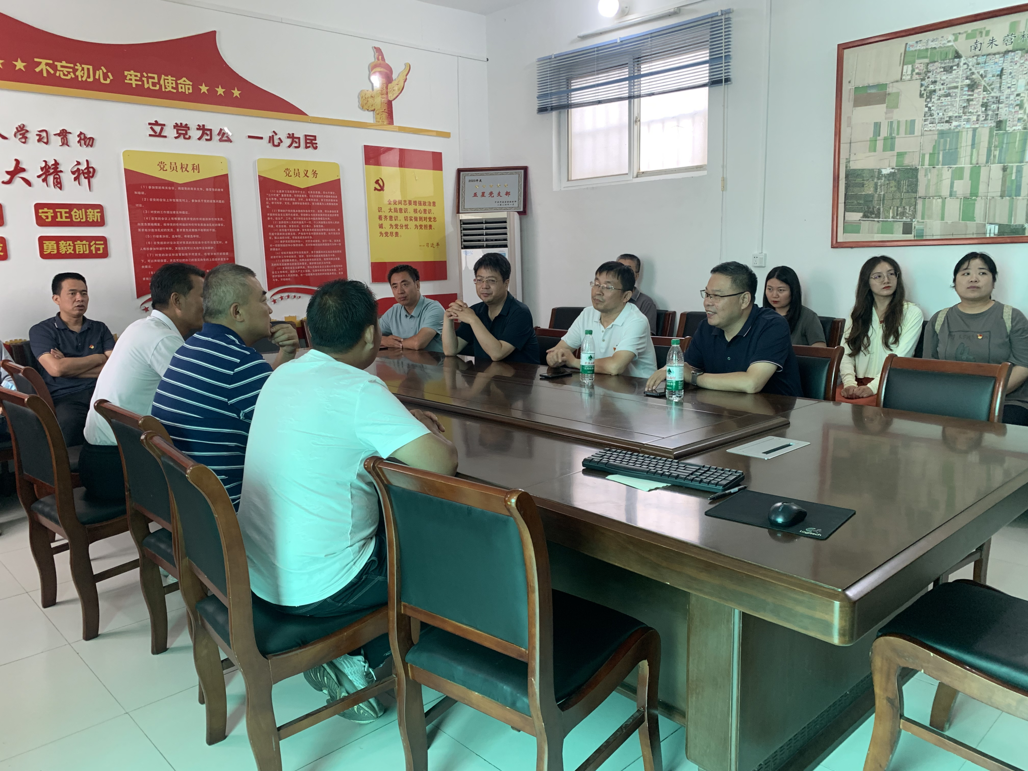 交流座谈会上,我校驻南朱营村第一书记邵水军带领驻村工作人员对支部的到来表示热烈欢迎,详细介绍了南朱营村的基本情况及党建工作、发展特色产业、建设文明乡风、提升乡村治理等乡村振兴的工作成果,以及帮扶工作的下一步工作打算。
