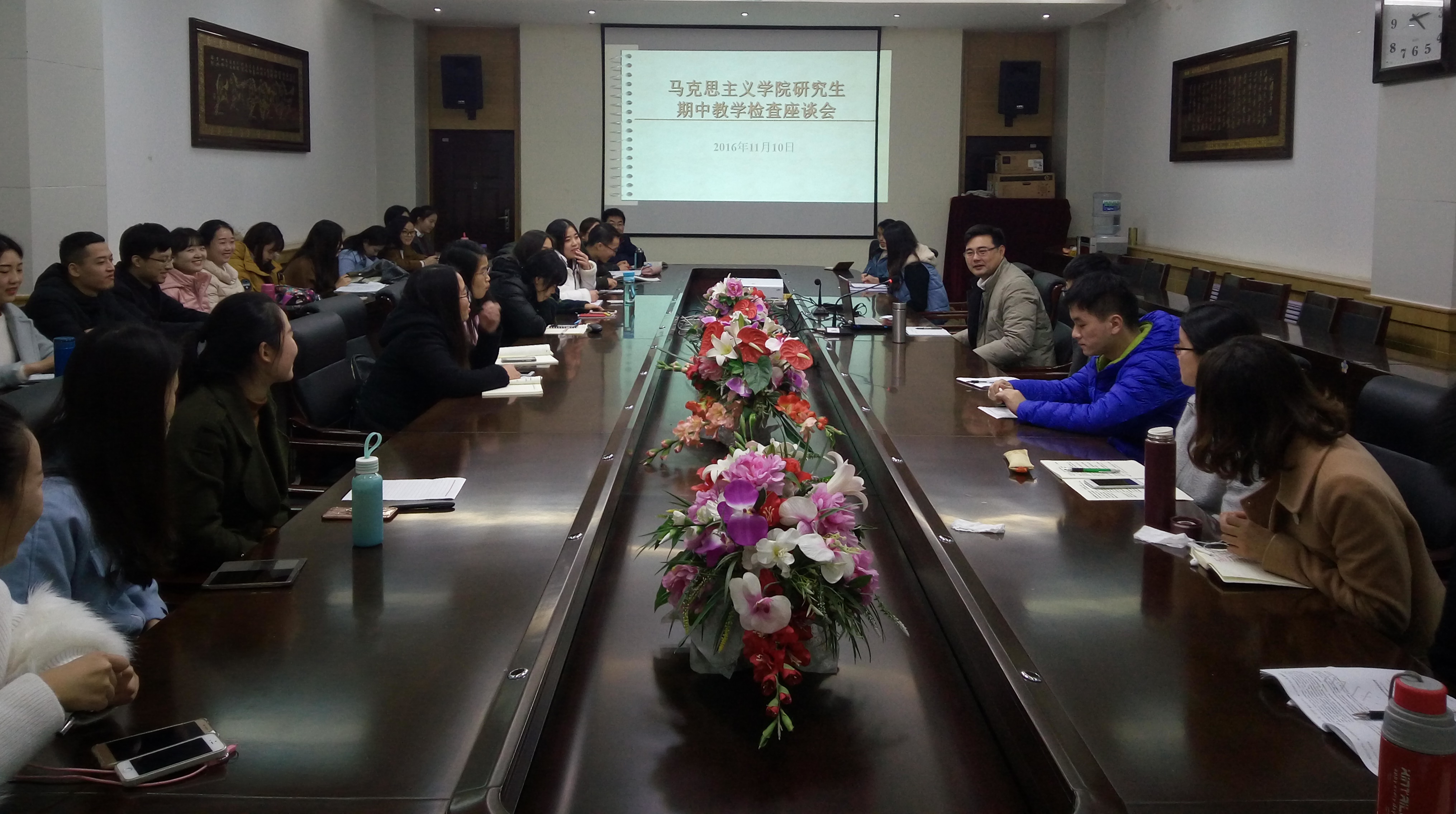 为了进一步加强研究生培养工作、全面提升研究生综合素质,确保研究生教学科研活动沿法治轨道进行,学院于 11月10日下午在文综楼202会议室召开了“研究生期中教学检查座谈会”。座谈会由学院教研办主任解斐斐主持,学院主管研究生教学副院长张富文、研究生导师、辅导员和任课教师与会,全院60余名研究生参加了座谈。