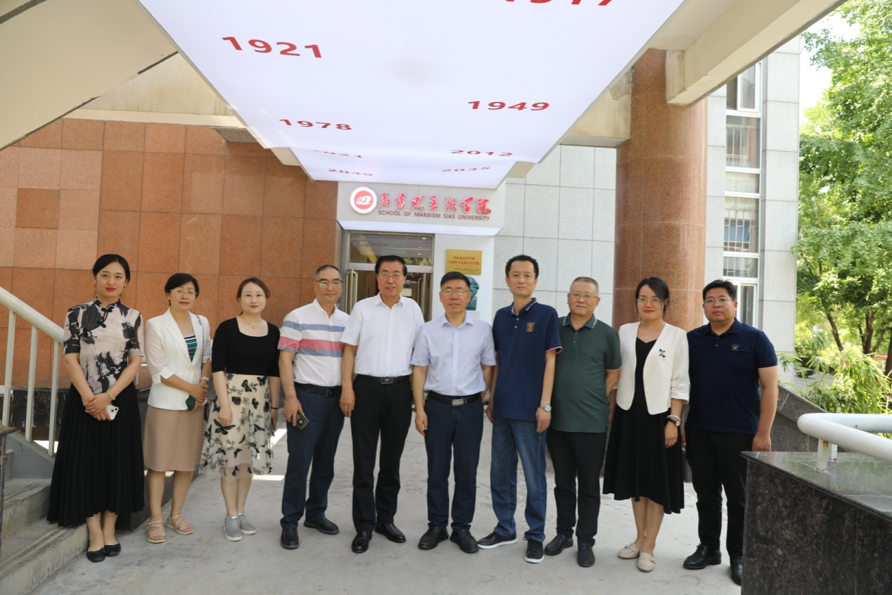 为学习贯彻习近平总书记关于思政课建设的重要指示精神,在研学中开阔视野,提升育人水平,5月22日,我校思政课名师工作室一行5人在马克思主义学院院长、河南省思政课名师工作室(河南理工大学)负责人郑小九的带领下,前往郑州西亚斯学院马克思主义学院进行学术交流与调研考察。