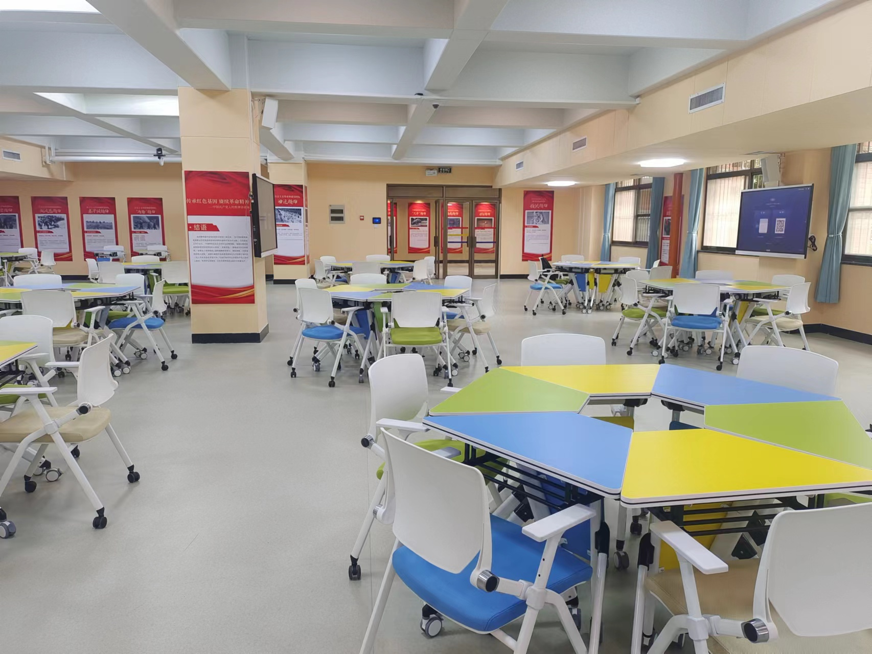 河南理工大学数字化思政实践教学中心位于河南理工大学南校区第一图书馆一楼西侧,面积为350平方米,由智慧课堂教学区、虚拟仿真实践教学区和思政文化墙三部分组成。该中心基于VR虚拟仿真技术,以华为ICT智能基础设施为基座,结合常态化录播系统、智慧课堂互动教学系统以及思政VR全景资源库,围绕常态化教学教研及思政虚拟仿真实验数字化转型为核心,满足常态化录播、小组研学、情景展示、课题研讨、课堂辩论等多种创新课堂教学模式,为师生营造创新交互、现实与虚拟相结合的沉浸式课堂氛围感和蕴含思政元素的数字化教学体验。