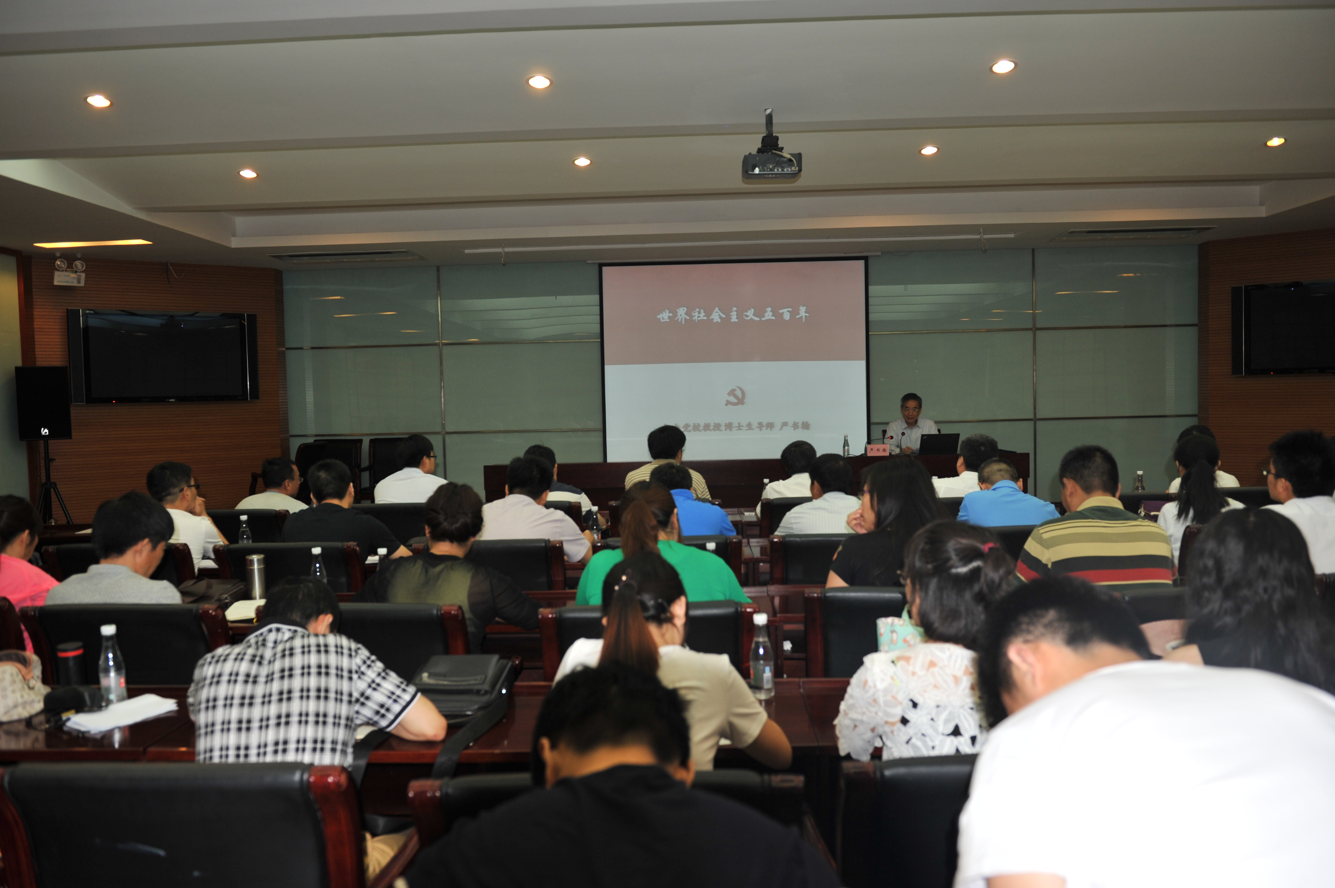 在《世界社会主义五百年》的讲座中,严书翰用两个小时的时间带着听众穿越了世界社会主义从空想到实践共500年的历程,包括六个历史阶段,即空想社会主义的产生和发展,马克思恩格斯创立科学社会主义,列宁领导“十月革命”并实践社会主义,苏联模式的逐步形成,新中国成立后中国共产党对社会主义的探索和实践,中国共产党开创和发展中国特色社会主义。严教授的精彩讲解让马克思主义学院的师生开阔了眼界,增长了知识,更加深刻地认识到中国选择走社会主义道路的历史必然性,增强了师生对中国特色社会主义的道路自信、理论自信和制度自信。