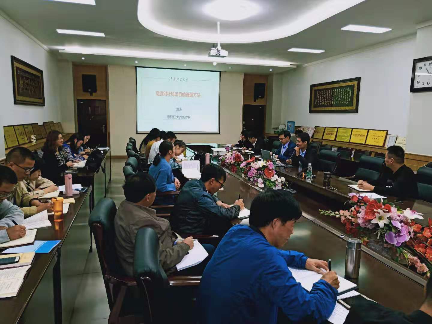 10月8日下午,应学院邀请,财经学院刘涛博士莅院作题为“高级别社科项目的选题方法”的报告,报告由学院党委副书记兼副院长张富文主持,学院全体教职工参加了报告会。