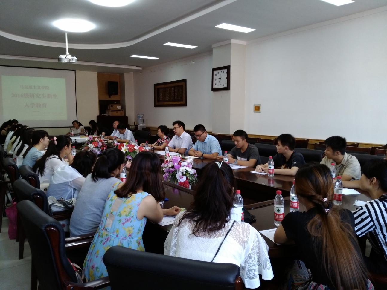 9月8日上午,马克思主义学院2016级研究生新生入学教育在文科楼202室举行。马克思主义学院党委书记李照修、院长侯菊英、副院长郑小九、张富文出席会议,学院团委、教研办、党政办老师和2016级全体研究生新生参加会议,会议由学院团委书记胡志明主持。