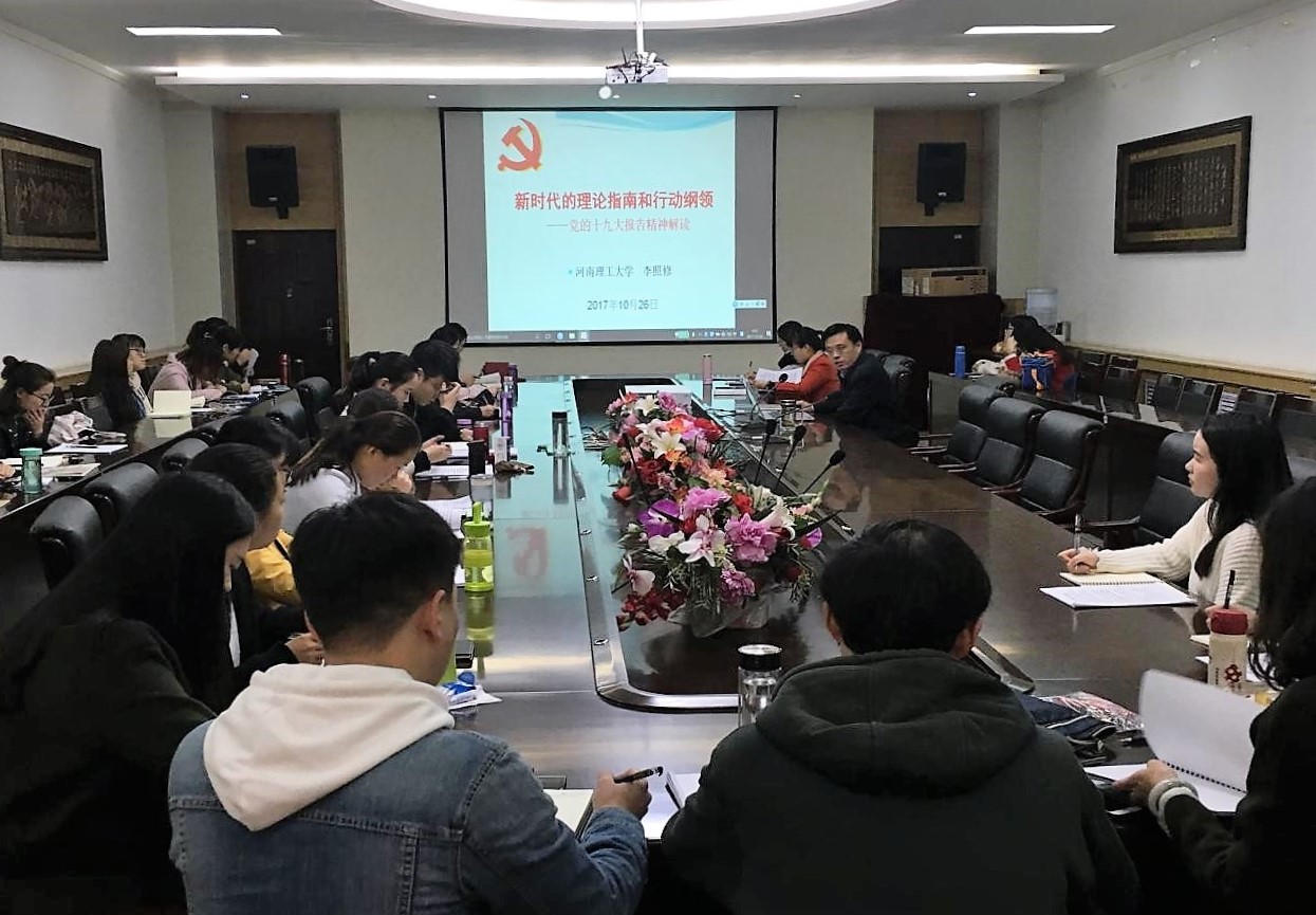 10月30日上午,学院在文科楼202会议室举办解读“十九大”精神专题报告会。院党委书记李照修为全体研究生作题为《新时代的理论指南和行动纲领——党的十九大报告精神解读》的专题报告。