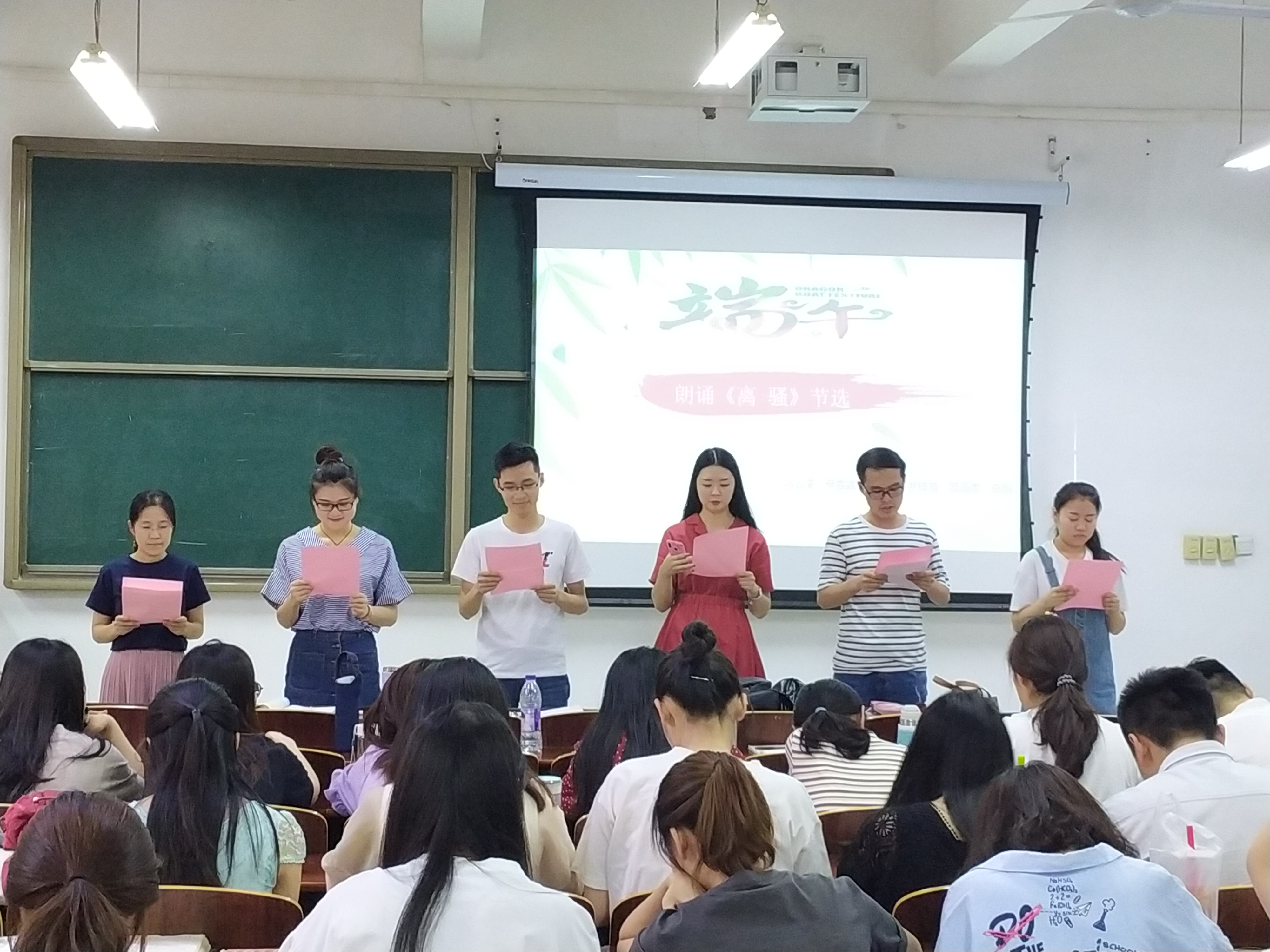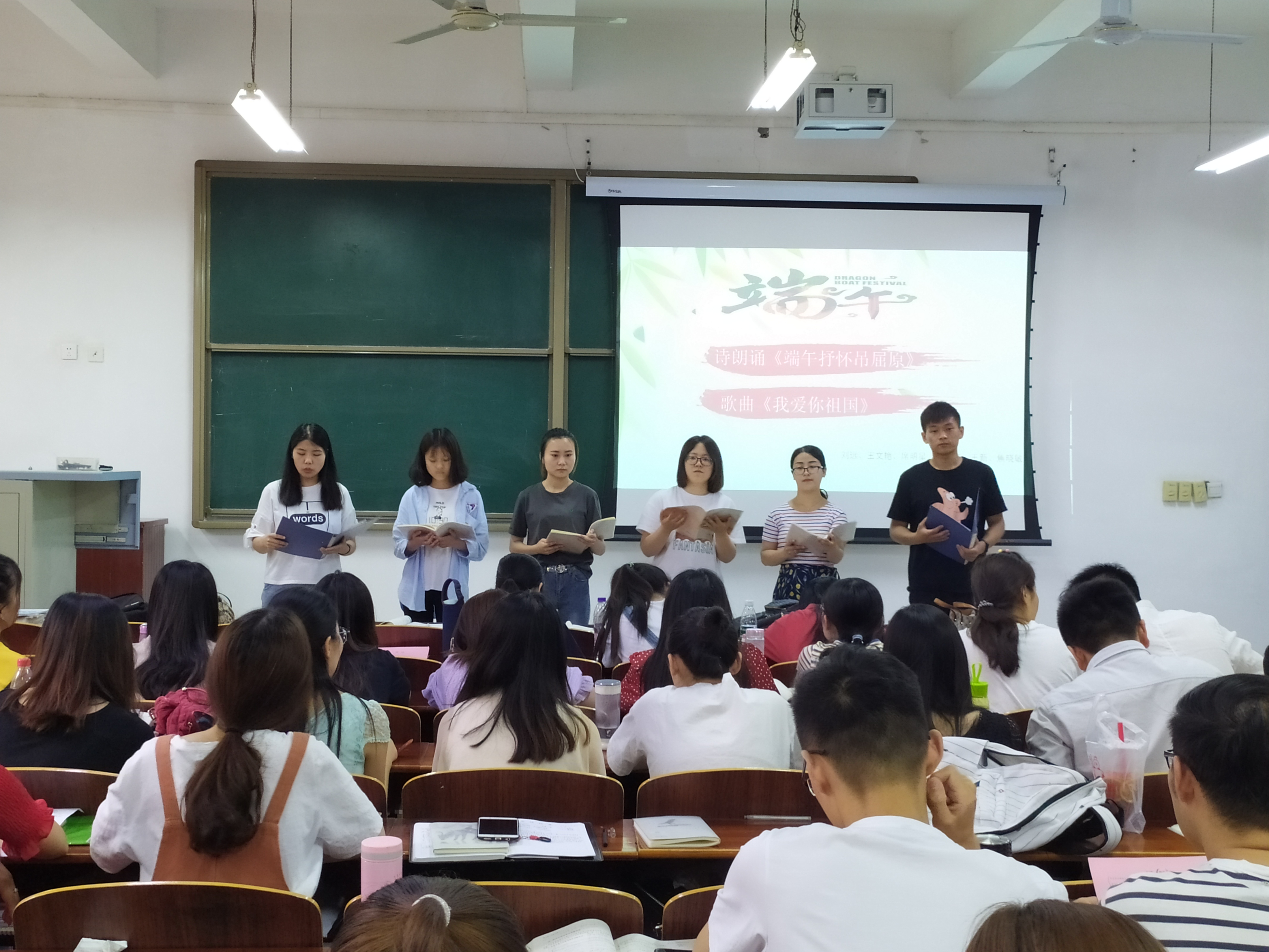 主持人王琪和蒋松伟通过PPT讲述了端午节的由来,各党支部通过讲故事、演话剧、诗朗诵等形式展现了屈原的爱国主义精神,有《站在一条河流的边缘》、《离骚》、《怀念那远去的灵魂》、《端午怀吊屈原》、《淡水河边悼屈原》等曲目。一位位讲述者落落大方、娓娓道来,一个个朗诵者饱含深情、慷慨激昂,他们用丰富多彩的表演形式表达了我们对传统节日的热爱以及对屈原爱国主义精神的弘扬,这也激励我们在新时代用实际行动去践行伟大的爱国主义精神。