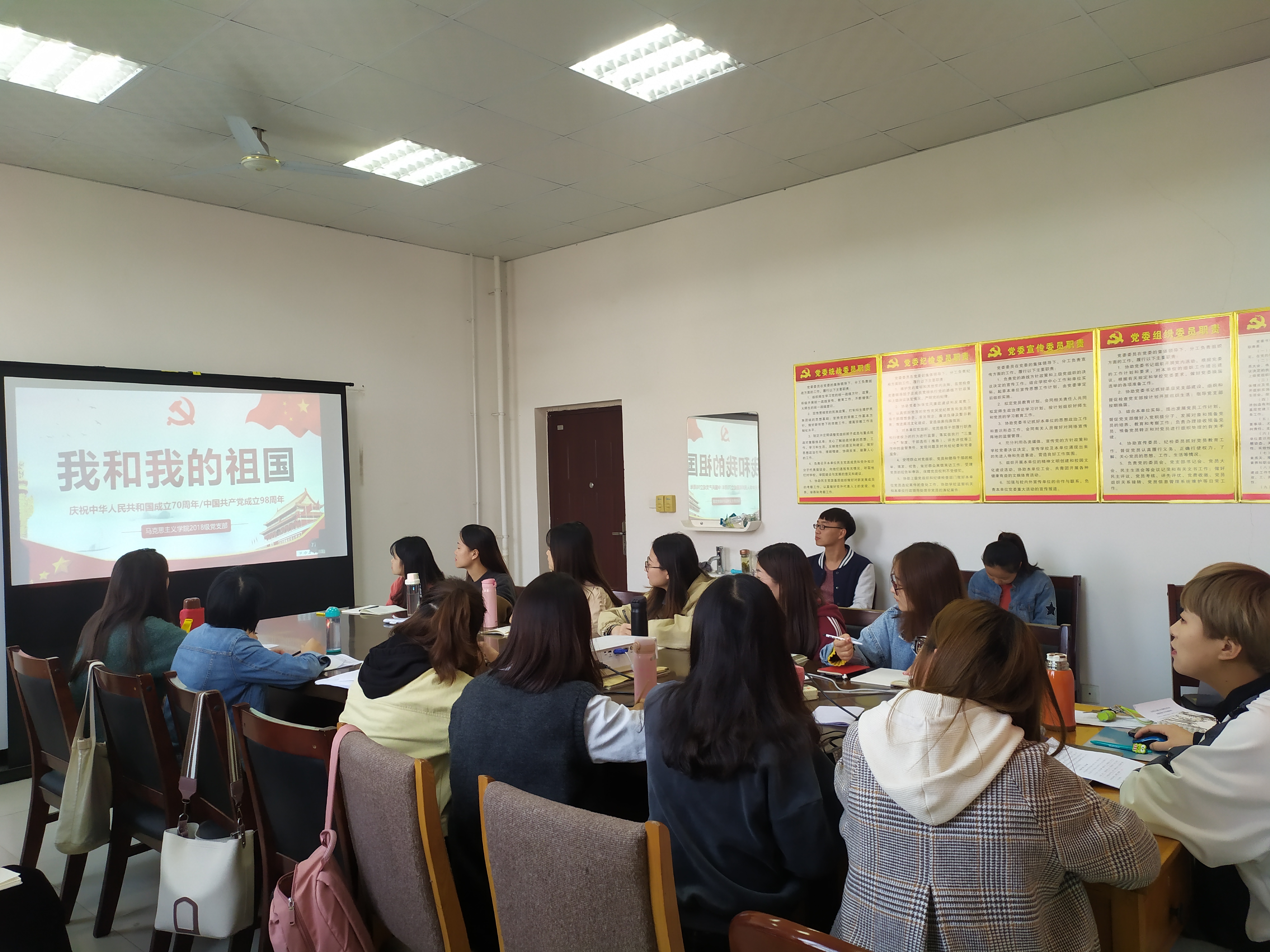 各党支部同学认真聆听了党支部书记讲授的党课。2017级研究生党支部在支部书记赵雪晴的带领下进行入党初心故事分享,通过讲述初心故事、重温入党誓词、共过政治生日、向党说句心里话、开展讨论交流等方式,激励党员忆初心、亮初心、守初心、践初心。2018级党支部书记杨娇与2019级党支部书记马鹏涛则以“我和我的祖国”为题目,围绕“中国共产党的三大历史贡献、党的历史给我们的三大启示、70年来的光辉历程、70年来的伟大奇迹、奋进新时代”五个方面的内容,进行了精彩的讲解,让同学们感悟中国共产党的“初心”和“使命”,感受新中国成立70年来翻天覆地的变化。