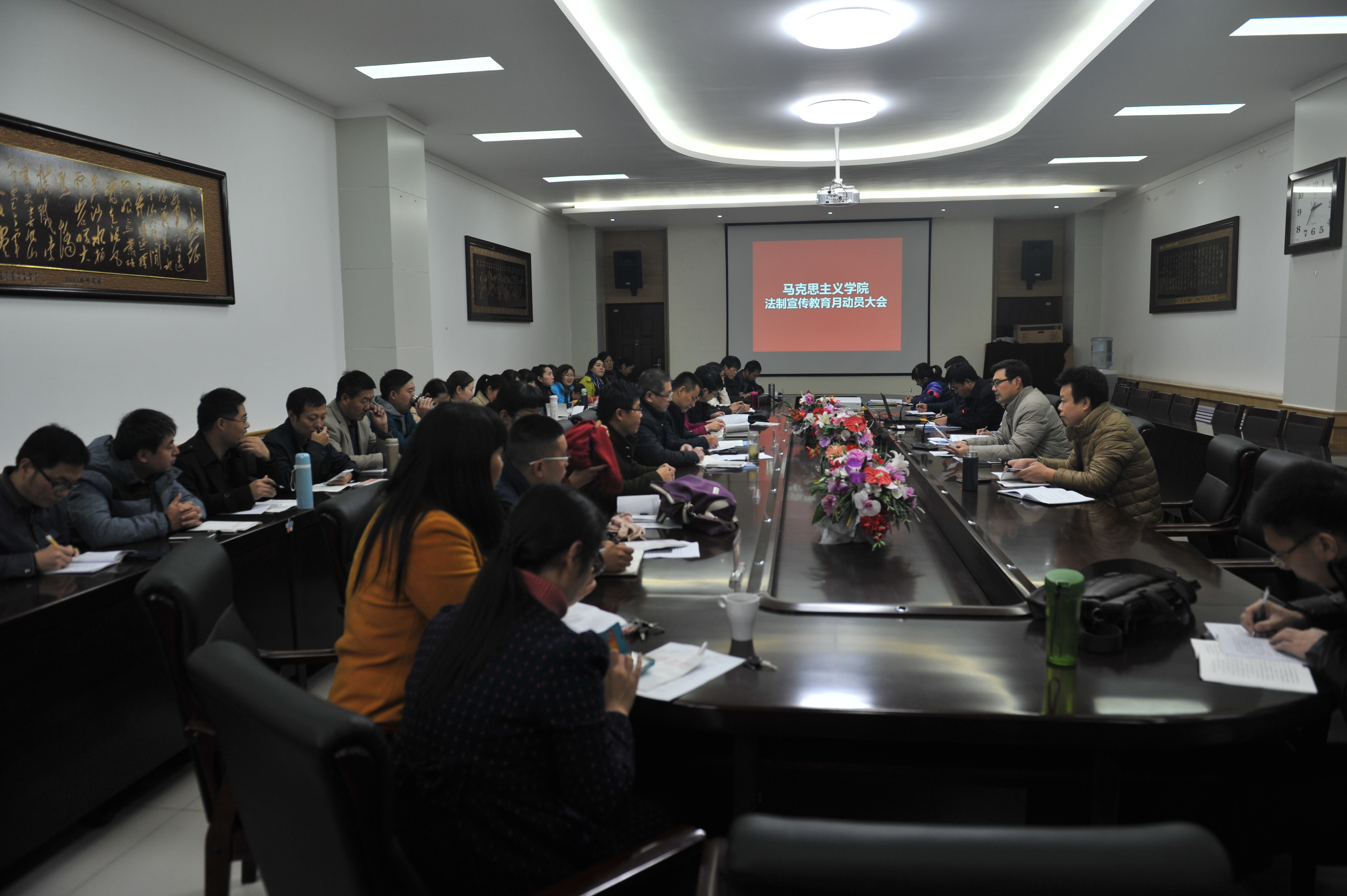为深入开展法制宣传教育月活动,提高广大师生的法律素质和法律意识,按照学校统一部署,11月10日下午,马克思主义学院在文综楼202会议室召开法制宣传教育月活动动员大会。会议由院党委书记李照修主持,学院党政领导和全体教职工参加了此次动员大会。
