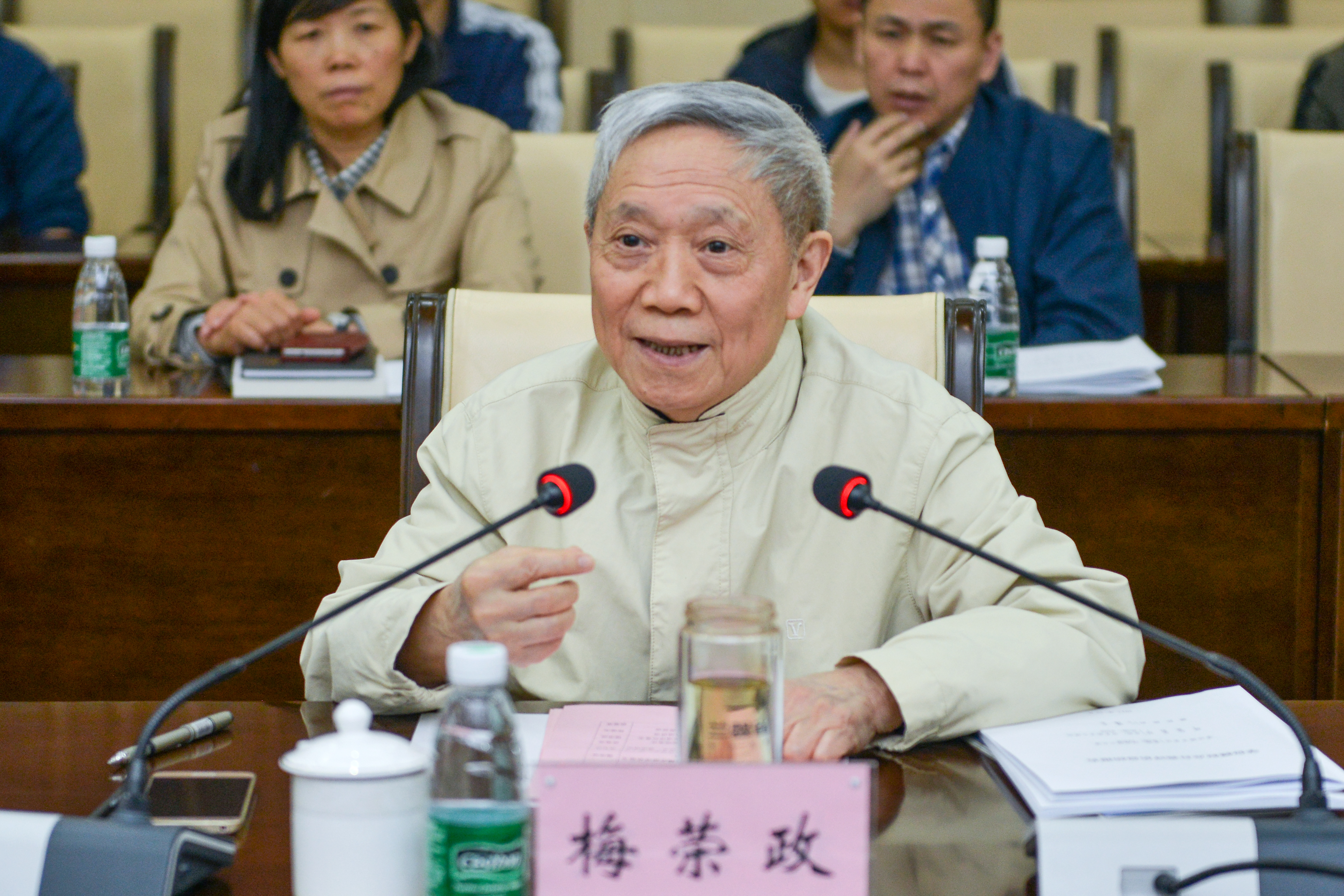 专家组组长、武汉大学教授荣梅政主持汇报会并讲话