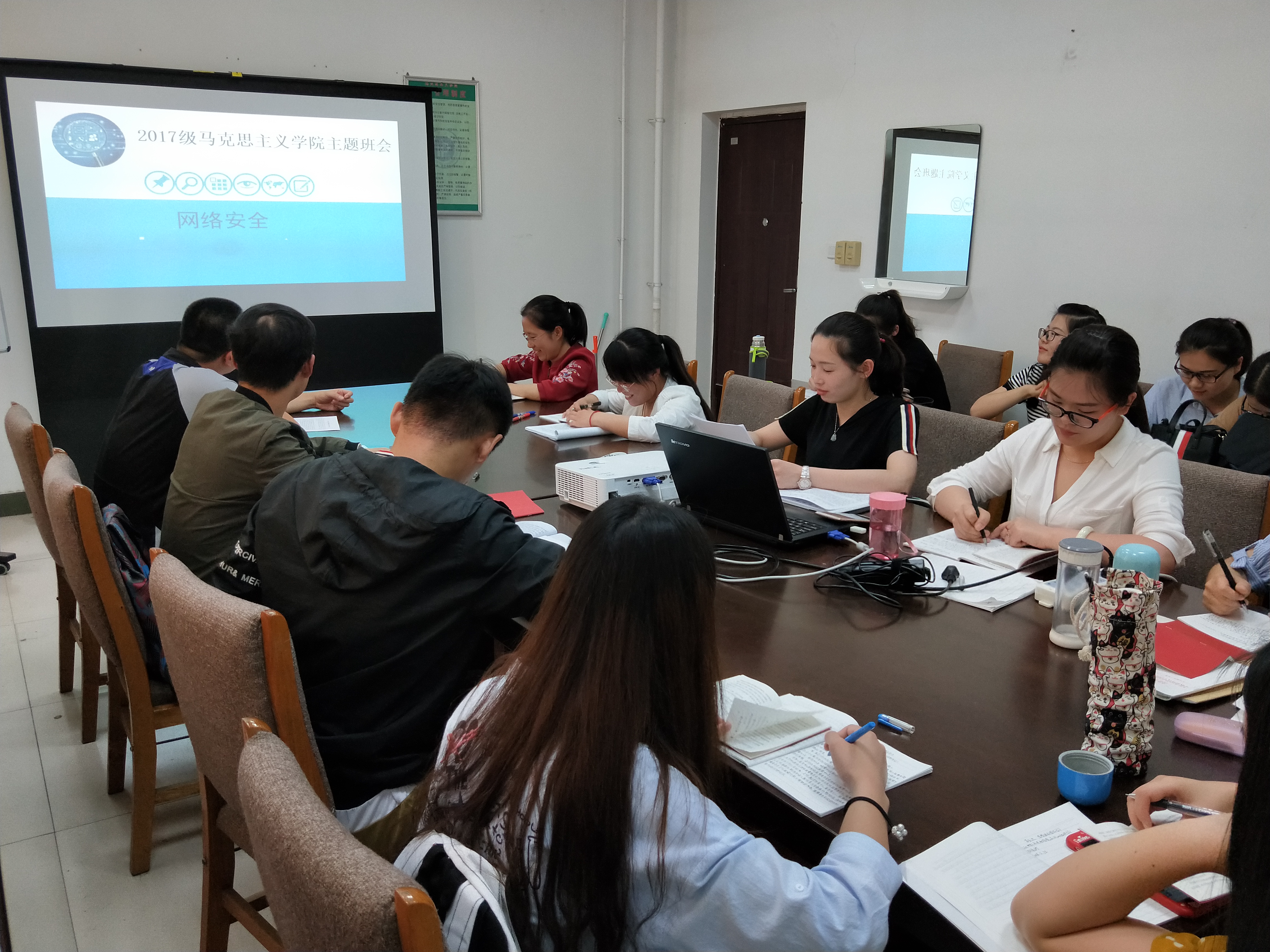 为加强网络安全教育宣传,营造安全、健康、文明、和谐的网络校园,5月15日,马克思主义学院组织2017级全体研究生于文科楼225召开网络安全教育主题班会。