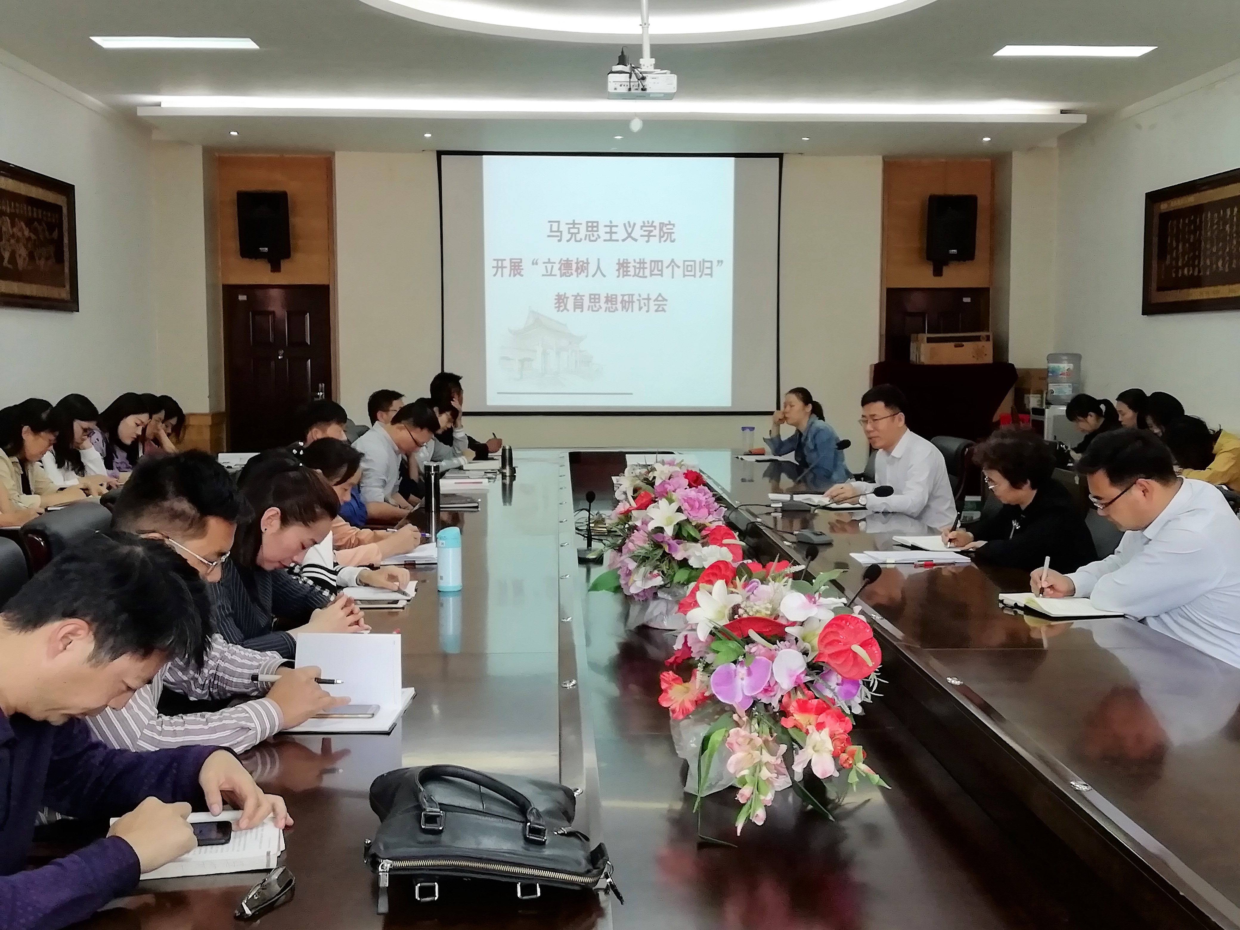 9月25日下午,学院在文科综合楼202会议室召开了以“落实立德树人 推进四个回归”为核心的教育思想大讨论动员会。院长侯菊英、副院长郑小九、张富文,学院全体教职工及学生代表参加了会议。会议由侯菊英主持。