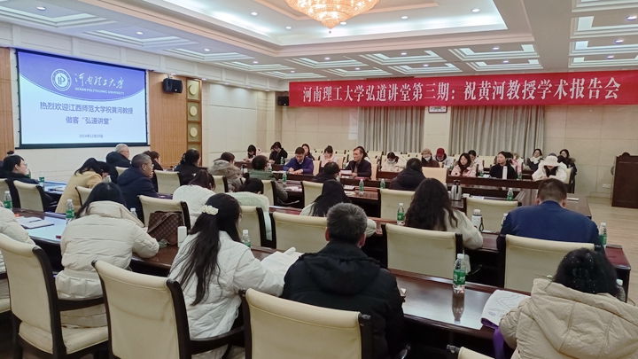12月19日下午,中央马克思主义理论研究和建设工程专家、江西师范大学祝黄河教授做客我校“弘道讲堂”并作学术报告。副校长程伟出席报告会,马克思主义学院院长郑小九主持报告会,学校专兼职思政课教师代表和马克思主义学院研究生聆听报告。