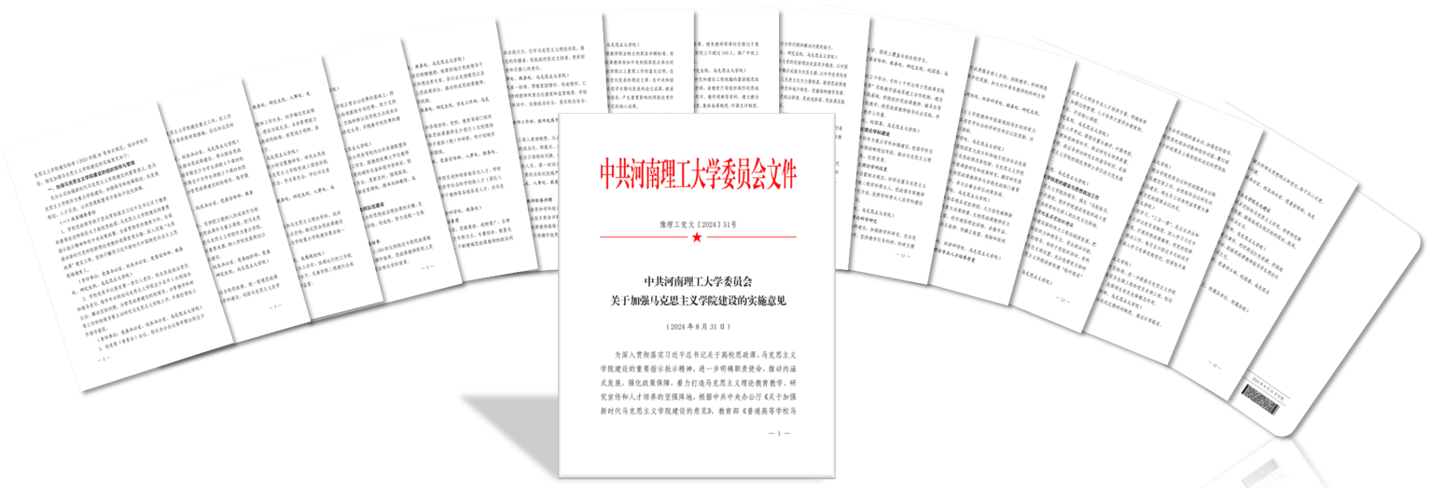 2024年8月31日,校党委印发《关于加强马克思主义学院建设的实施意见》,对加强马克思主义学院建设作出系统部署,提出了5个方面46条具体措施,在组织领导、队伍建设、教学科研、学科建设、党建与思想政治工作等方面给予马克思主义学院一系列政策支持,为当前和今后一个时期马克思主义学院的建设发展提供了制度遵循和行动指南。