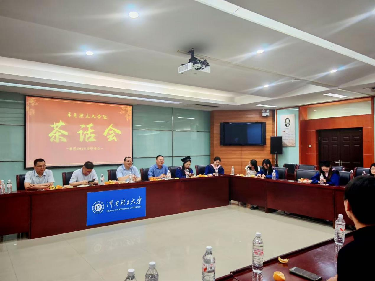 为表达对2025届毕业生的深切祝福,激励毕业生以昂扬姿态踏上人生新征程,马克思主义学院于6月3日举行了欢送2025届毕业生系列活动。马克思主义学院党委书记洪振涛,院长郑小九,党委副书记、副院长陈留根,副院长邵发军、王新刚以及教师代表、2025届研究生毕业生参加活动。