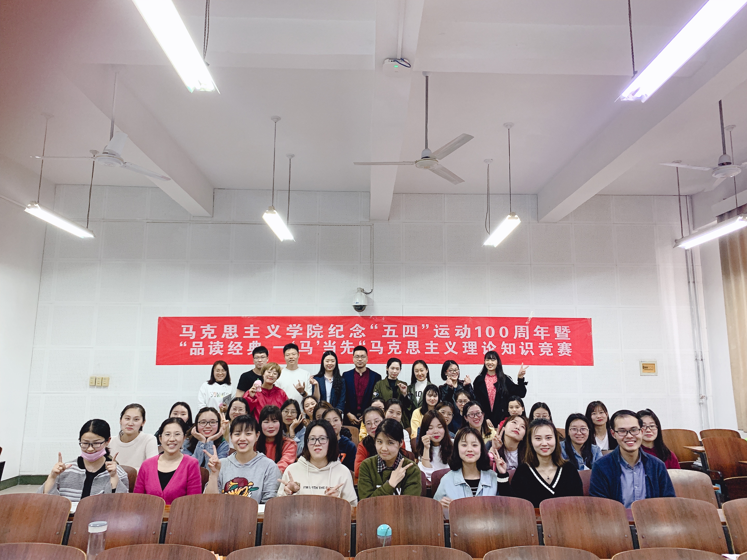 在纪念五四运动100周年之际,4月30日,马克思主义学院研究生在文科楼110室举办举办纪念五四运动100周年暨品读经典·一“马”当先马克思主义理论知识竞赛。马克思主义学院副院长张富文和团委胡志明、杨娇老师以及2017级、2018级研究生党支部全体党员和积极分子出席活动。